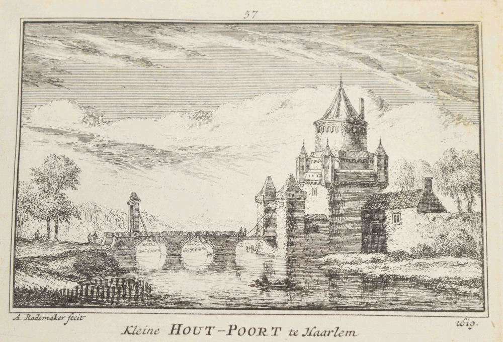 Abraham Rademaker. Circa 1725. 130 copper-engraved plates with text below in Dutch, French and English in shabby vellum binding, small 4to. With loose and tender prints. Sold as a collection of prints w.a.f.
