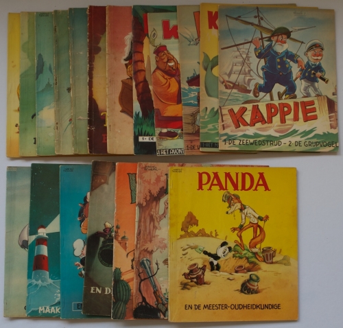 See the Dutch description: De Muinck en Co - Deel 7, serie 3, 1953. + de overige 6 deeltjes uit de serie, in redelijke tot goede conditie. + Kappie op weg naar Hollywood, de Muinck & co, 1952 en 2 andere deeltjes uit de serie (van in totaal 4) + Kappie en De Zeewedstrijd, Friesche Vlag, 1957 en 5 (van de 6) andere deeltjes uit de serie - en Panda en de Meester-Oudheidkundige, de Muinck en Co, 1953 en 2 andere uit de serie.