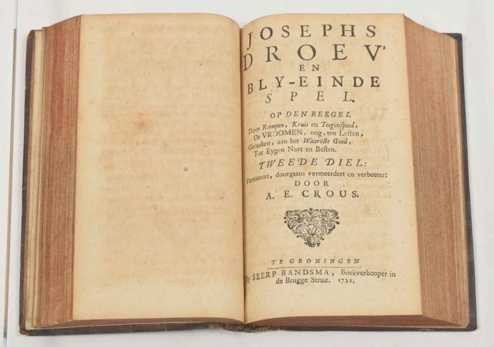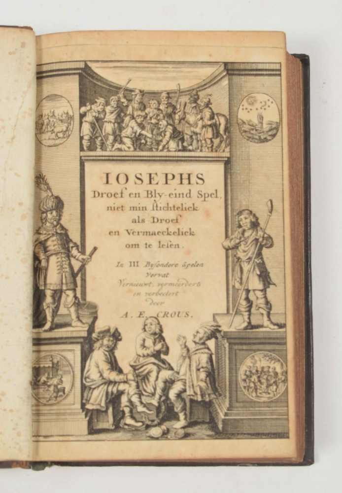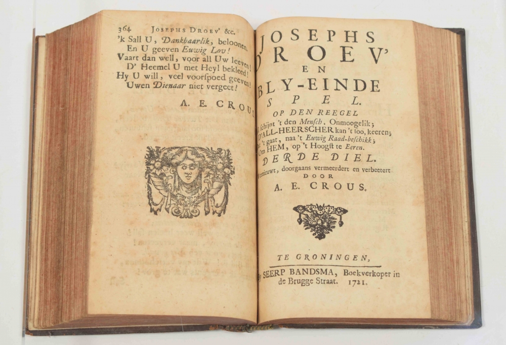 Albert Ebbo Crous. Groningen, Seerp Brandsma, 1721. 3 parts in one vol., (30),174;(3),177-364;206,(1) p. (parts 1 and 2 consecutively paged), title plate, each part with title with engraved vignette. Leather, ribbed and gilt back with letterpiece, boards with gilt border, 8vo.