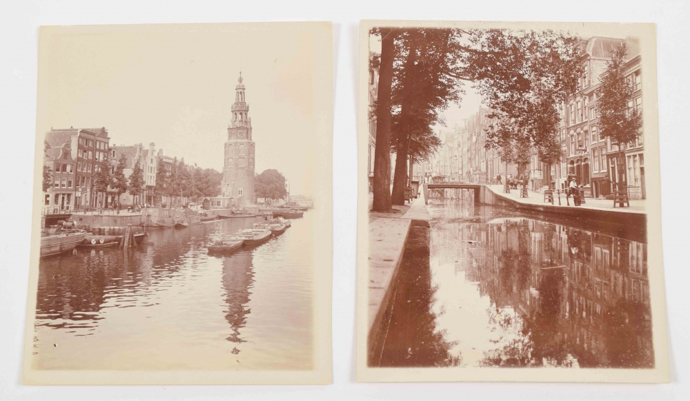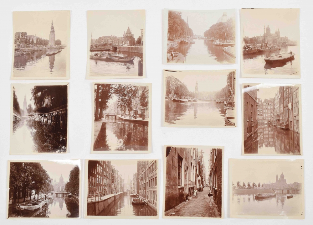 Series of 12 albumen photos made by English photographer Robert A. Colman, taken during his trip to the Netherlands in 1906. Each 10.2 x 12.6 cm. Incl. OZ Voorburgwal Nicolaaskerk, Groenburgwal, OZ Voorburgwal Korte Niezel/ Zeedijk - and 9 more.