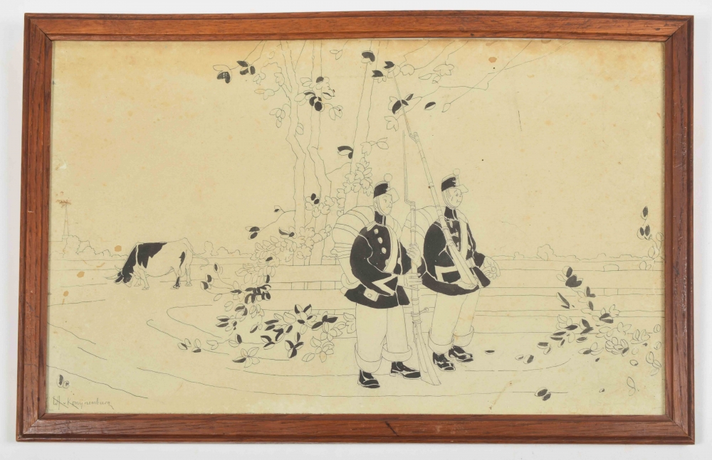 Willem van Konijnenburg (1868-1943). (Two 'brave' soldiers meet a bull)