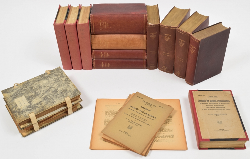 der Homosexualität. Herausgeber Magnus Hirschfeld. Year 1-13 in 12 vols. and year 14, 19-22 in loose nos. (year 10-13 under title Vierteljahrsberichte). Leipzig, Max Spohr, 1899-1922. Year 1-9 in orig. cloth, year 10-13 in halfcloth, others in orig. wrappers.
