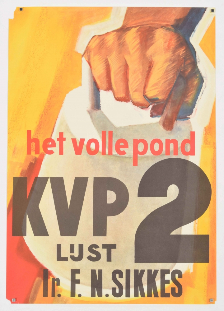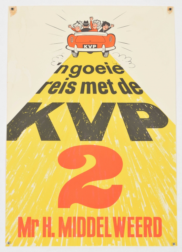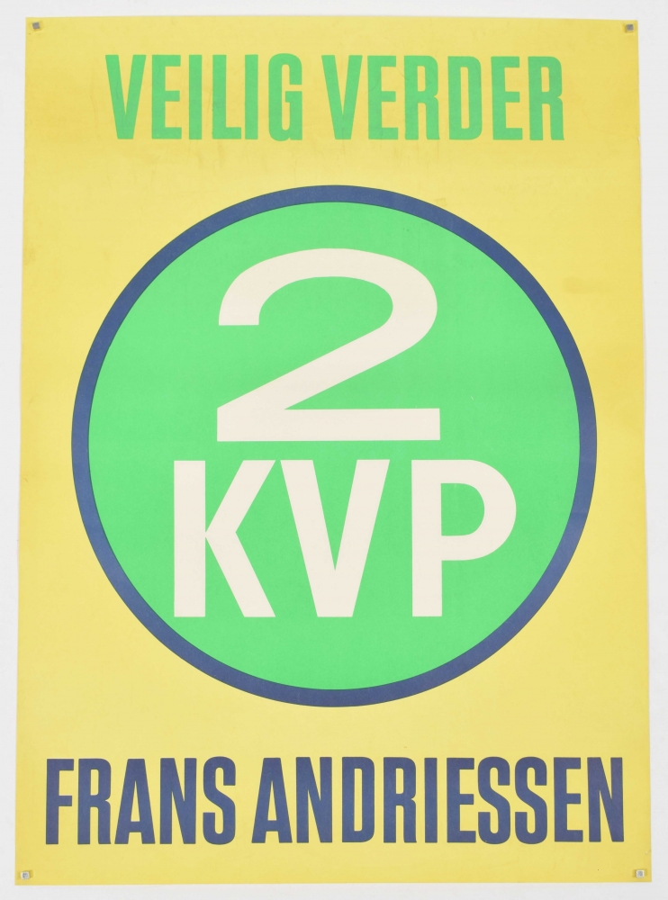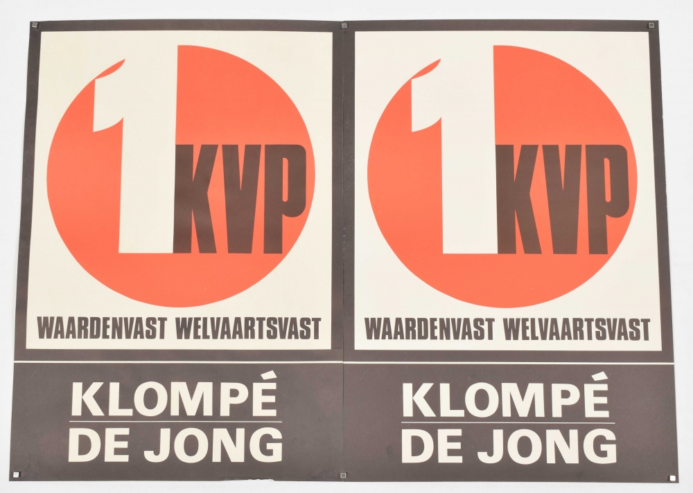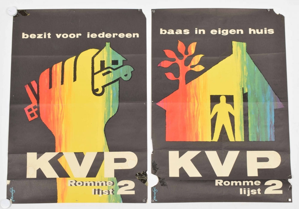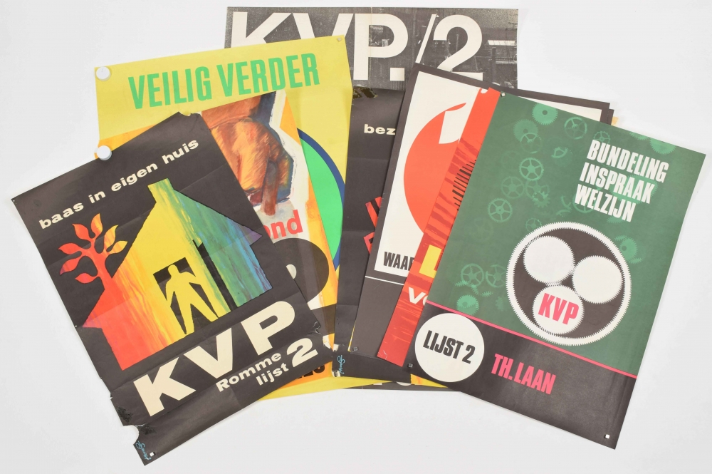 Lot of 10 posters from Katholieke Volks Partij between 1962 (Baas in eigen huis. KVP Romme lijst 2) and 1971 (Th. Rossen, 't gaat om Amsterdam). Several with trifle damage in corners, else good condition.