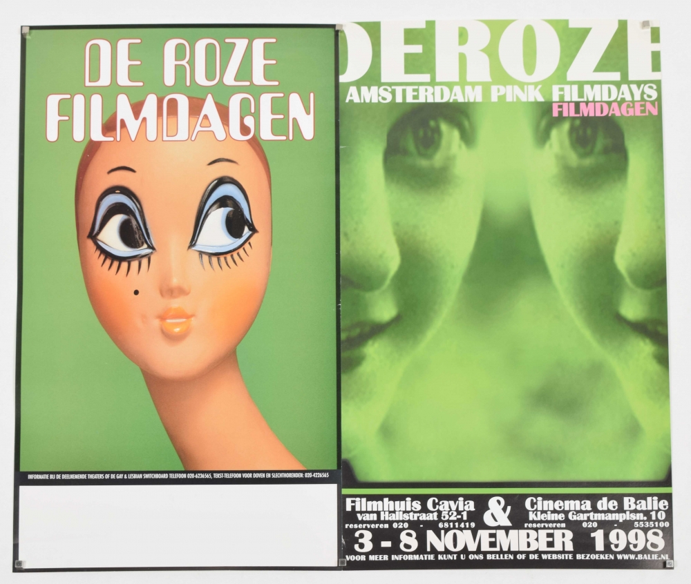 19 posters De Roze Filmdagen, Amsterdam, between 1996 (first edition) and 2016. Added: The Gay Games Amsterdam, 1998.