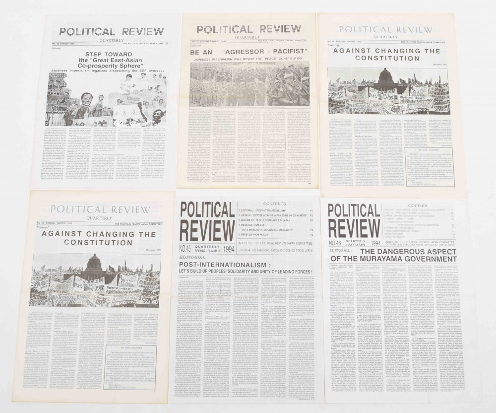 Nos. 42 to 49, Summer 1992 to Autumn 1996. Tokyo, The Political Review Japan Committiee. Most folio, 2x 4to. Folio copy with middle fold. Magazine by urban guerrilla group Japanese Red with many b/w illustrations + no. 44 double.