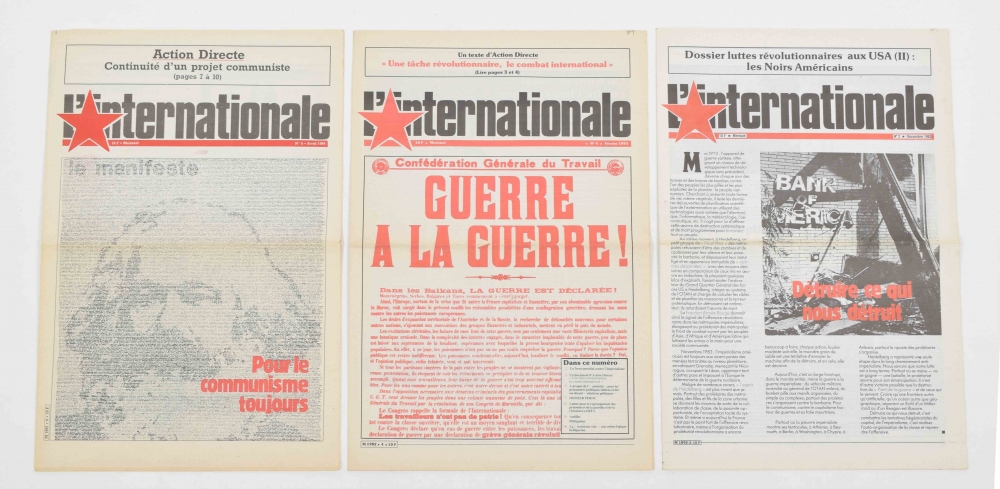 5 issues of the magazine by French radical left urban guerrilla group Action Directe (AD). 1983, no. 1 and 2; 1984, no. 4, 5 and 6. Paris, 1983-1984. Loose-leafed, folded + idem, German version of AD/ Rote Armee Fraktion. January 1988. Stapled.