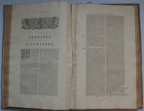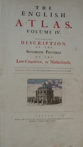 See the Dutch description: Containing the Description of the Seventeen Provinces of the Low-Countries, or Netherlands. By Richard Peers [...]. Oxford, Printed at the Theater for J. Jansonius a Wasberge and Stephen Swart, Booksellers in Amsterdam, 1682. 244, 42 p. Folio (61 x 40 cm.) In volperkamenten band.