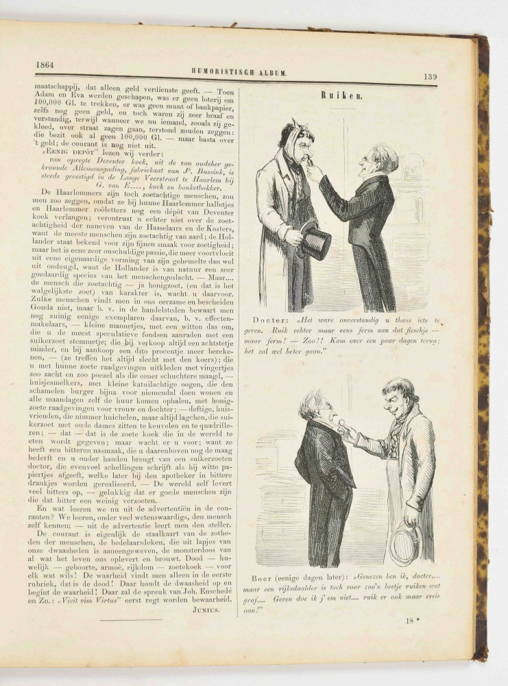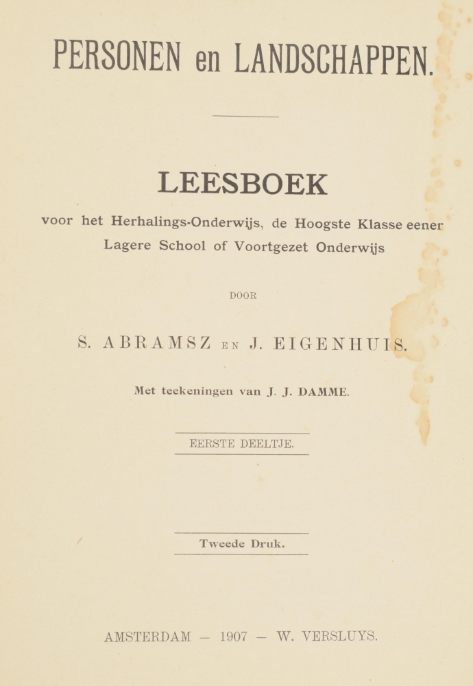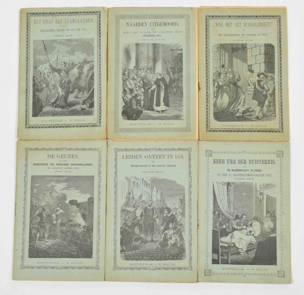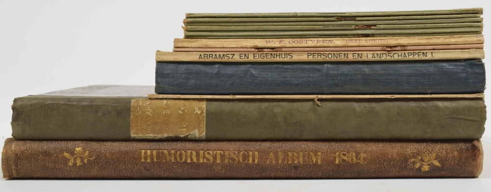 4th ed. Rotterdam, D. Bolle, c. 1900. 35 p. Orig. wrapper. Wrapper sl. foxed. Vaderlandsche Volksboekjes serie 1 no. 1 + nos. 2-6 from the same series + Personen en landschappen. Leesboek v/h herhalingsonderwijs (...). S. Abramsz & J. Eigenhuis. 2nd ed. Amsterdam, W. Versluys, 1907. Front cover and title stained + Nederlandsch magazijn, ter verspreiding van algemeene en nuttige kundigheden. 1837. Amsterdam, Gebroeders Diederichs. 416 p. At the front sm. water stain bottom centre + Humoristisch Album 1864. Rotterdam, H. Nijgh - and 3 more.
