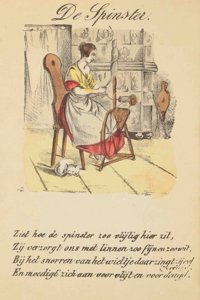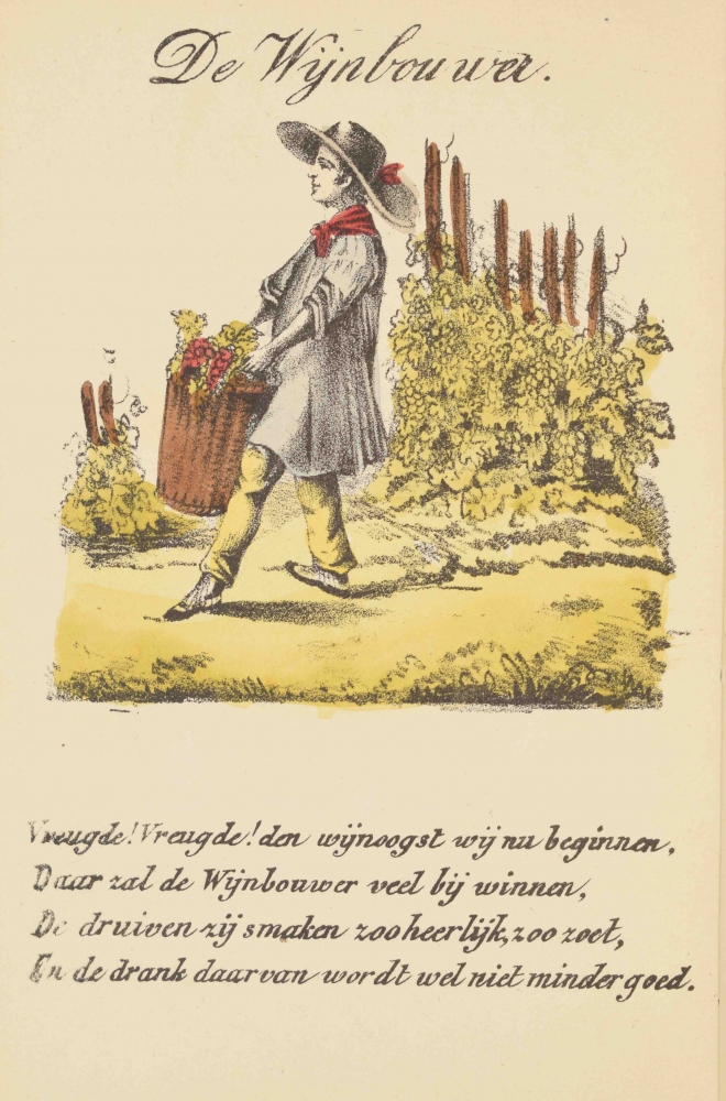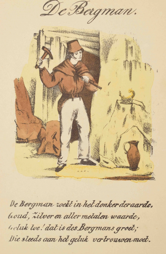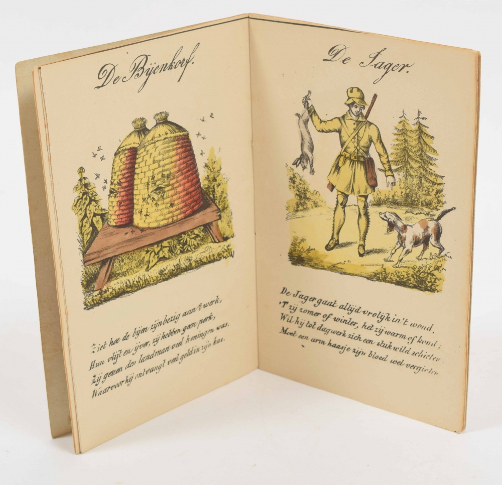 Turnhout, Glénisson & Van Genechten, n.d. (c. 1844), 12 leaves lithographed on one side (also lithographed text), with handcoloured ills. of professions above a rhyming verse, original printed limp boards, small 8vo size.