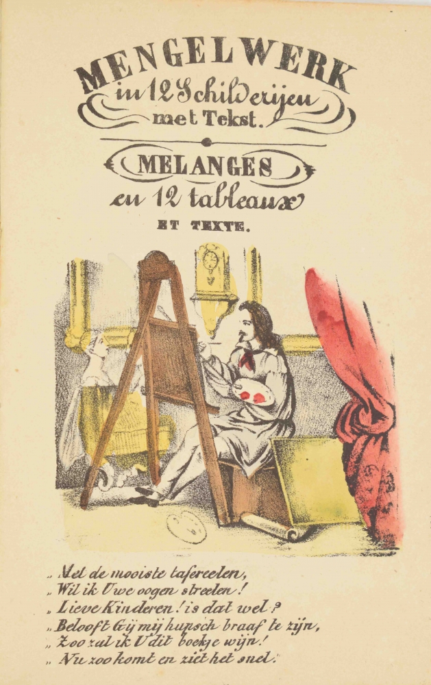Mengelwerk in 12 schilderijen met tekst. Melanges en 12 tableaux et texte