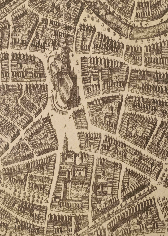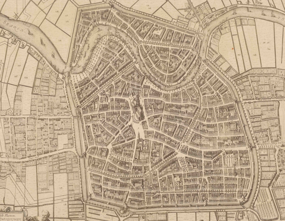 Plan of Haarlem from Teatro Belgico, o vero ritratti historici, chrono-logici, politici, e geografici, delle sette provincie unite, 1690 by Gregorio Leti. Amsterdam, Willem de Jonge, 1690.