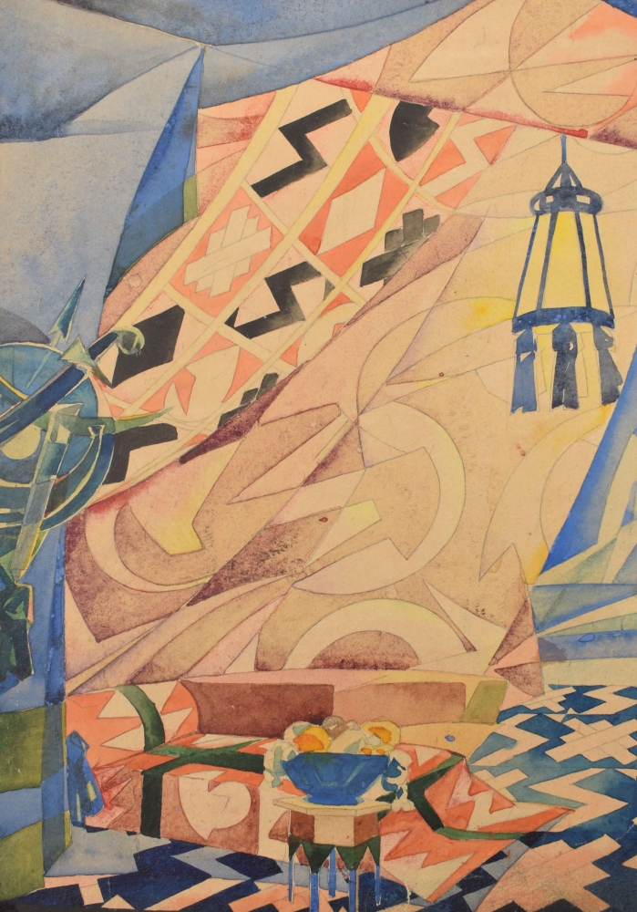 Gouache on thick paper, sheet size 34.4 x 44.3 cm, presumably 1920s, monogrammed upper r.