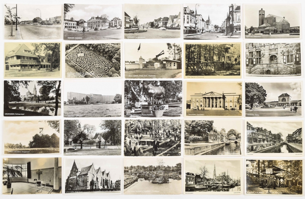 Lot with picture postcards related to the Dutch village of Oranjewoud and the city of Leeuwarden. Mostly early postcards. With picture postcards of both towns, partly 1950s-60s + booklet Pier Pander tempel.