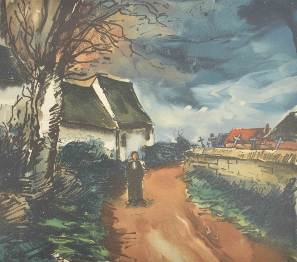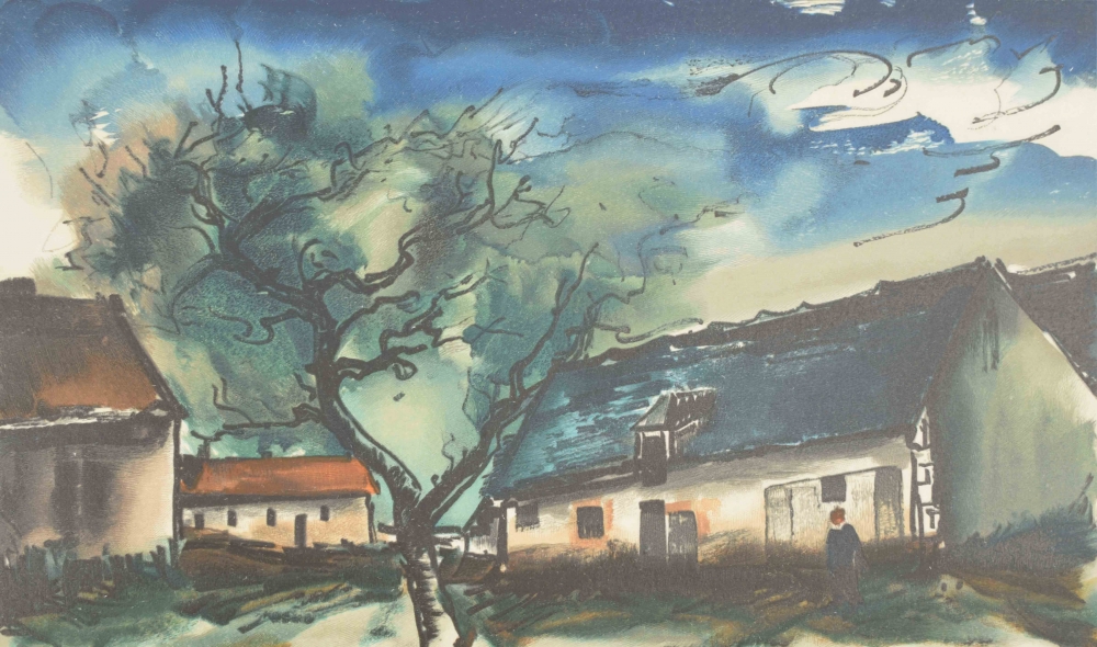 Trente originaux de Vlaminck. N.pl., Flammarion, n.d. (1960), printed in 288 numbered copies on vélin d'Arches pur fil (this is no. 151, one of 250 copies), (3) leaves, 247,(4) p., with 30 colour ills. after Maurice de Vlaminck ("les bois ont été gravés par Pierre Bouchet"), 4 facsimiles of letters by De Vlaminck, loose as issued in original wrapper, folio, cardboard chemise with morocco back, in slipcase.