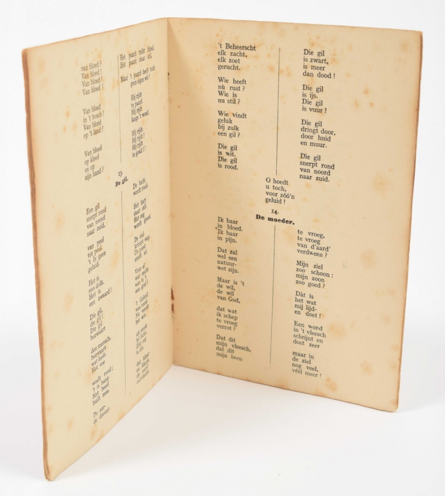 The Hague, printed by De Avondpost for the author, 1915, (13) p., original lithographed wrappers by Theo van Doesburg. Wrappers in remarkably good condition, internally foxed as always.