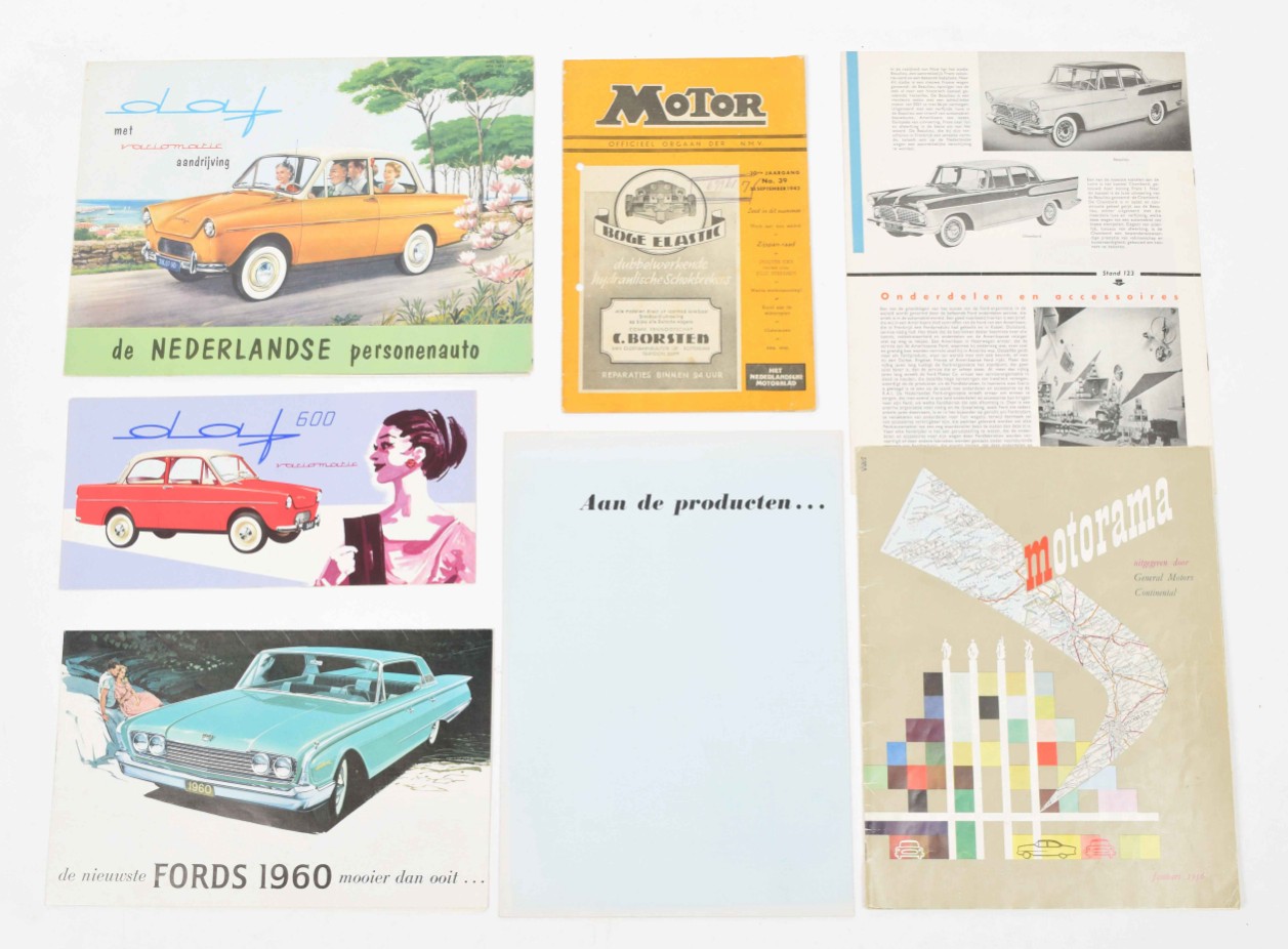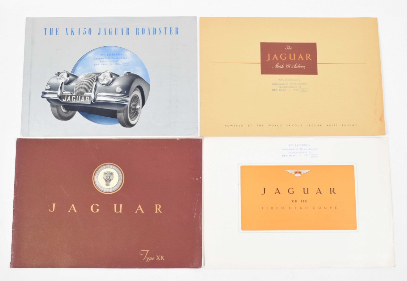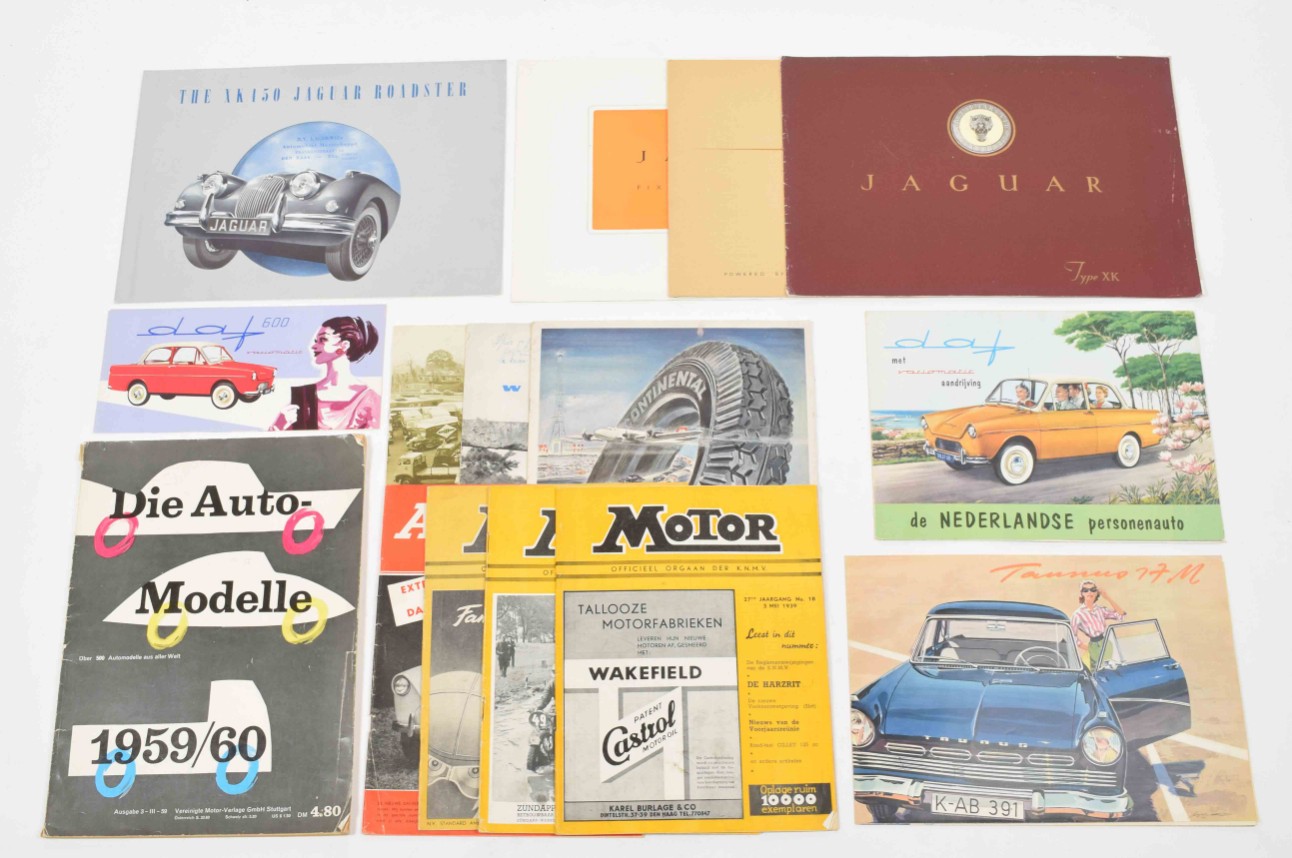 The Jaguar Mark V11 Saloon. Brochure 1952, English. Incl. 4 smaller leaflets/brochures related to Jaguar + Jaguar Type XK. 8 p. - and 2 more by Jaguar. Added: another 16 brochures/magazines from the 50s and 60s.