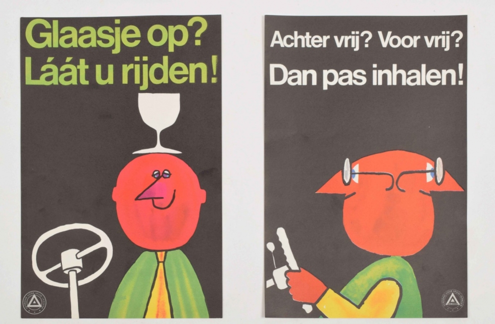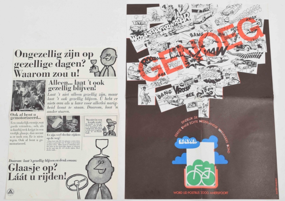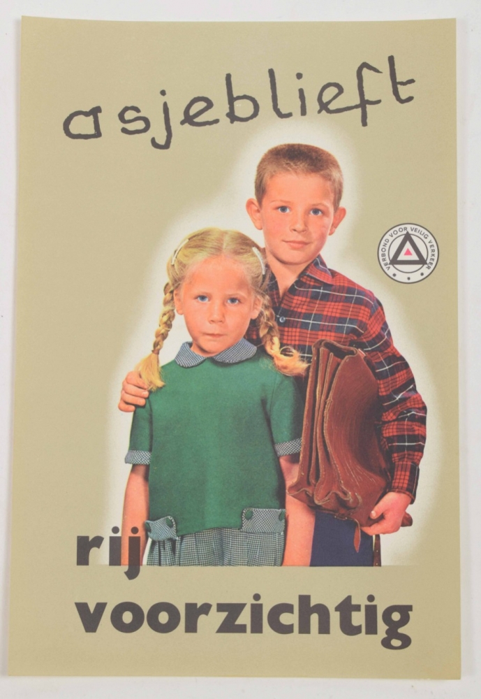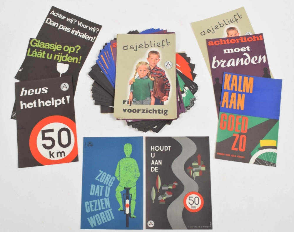 Stock of 8 different small size advertising posters for the Dutch "Verbond voor Veilig Verkeer" 30 x 20 cm, c. 1965-1970 - and 115 doublets. Added: 3 more in different size.
