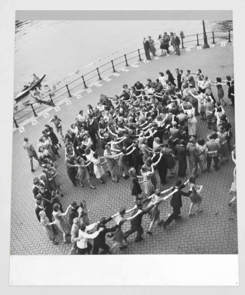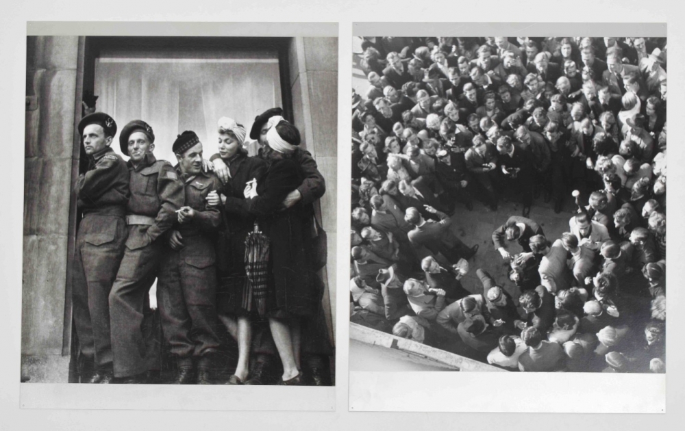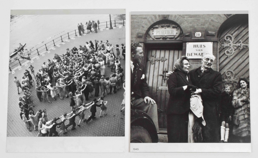 4 photos depicting liberation scenes.Each ± 44.5 x 39.5 cm and mounted on an aluminium plate. All with Oorthuys's stamp on the cardboard back of the plates. 1 plate with title in margin, and with 2 wooden slats affixed to reverse.