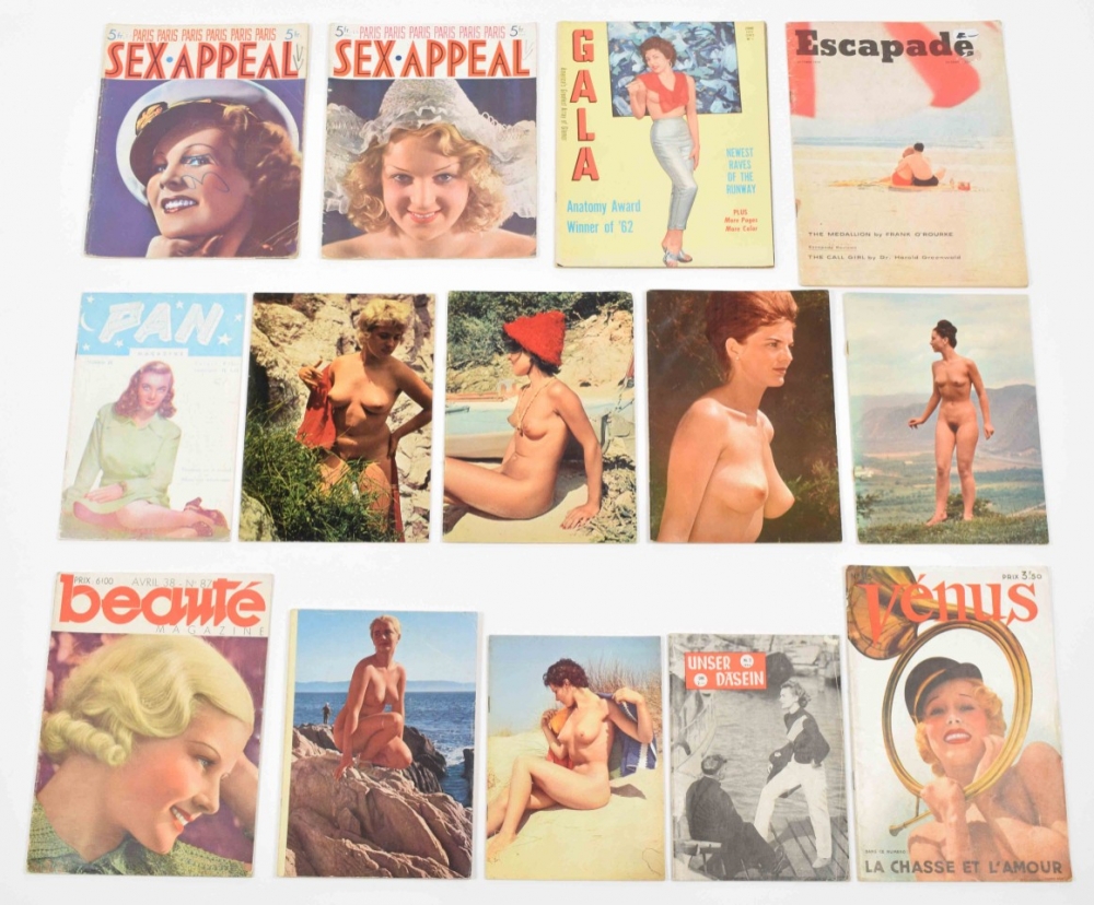 in French, German and English. Incl. Beautiful Britons, Enquêtes, La Femme et le Sport, Vénus, Touche! and Paris Sex Appeal.