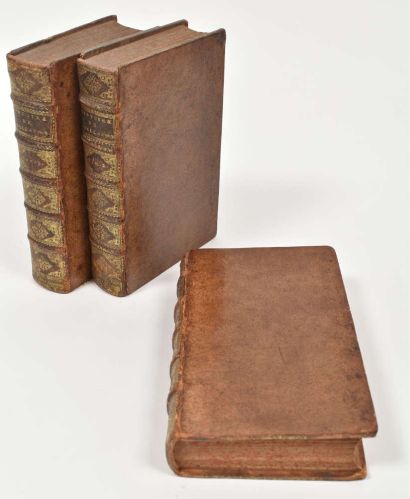 Offsetting from turn-ins; tops of spines worn (headbands showing). Attractive set of this rather scarce work, from the library of Andrew Fletcher, with his owner's entry in pen on lower pastedowns. Andrew Fletcher of Saltoun (1655-1716), Scottish bibliophile, globetrotter, author of political works and member of parliament, friend of the philosopher John Locke. The greater part of the huge library (6000 books across a wide range of subjects, often bought during his travels) was sold in the 1960s. His choice of books reflects his broad interest in law and government (both theoretical and in practice), in politics, conspiracy and intrigue, religion, history and literature. See P.J.M. Willems, Bibliotheca Fletcheriana, the extraordinary library of Andrew Fletcher of Saltoun, Reconstructed and Systematically Arranged (1999); W.C. Mackenzie, Andrew Fletcher of Saltoun, his life and times (1935). On the work: De Buck 2629; Lowndes III, 2183. Almost the entire stock of a fourth volume was seized and destroyed.
