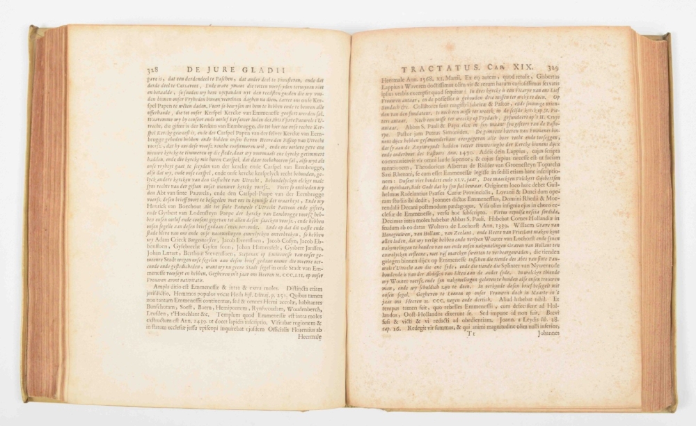 qui exercent id in dioecesi ultrajectina. Antonius Matthaeus. Leiden, Johannes Kellenaar, 1689. (16), 70, (8) pp. With engraved portrait of Charles V on title page. Overlapping vellum, manuscript title on spine, 4to.