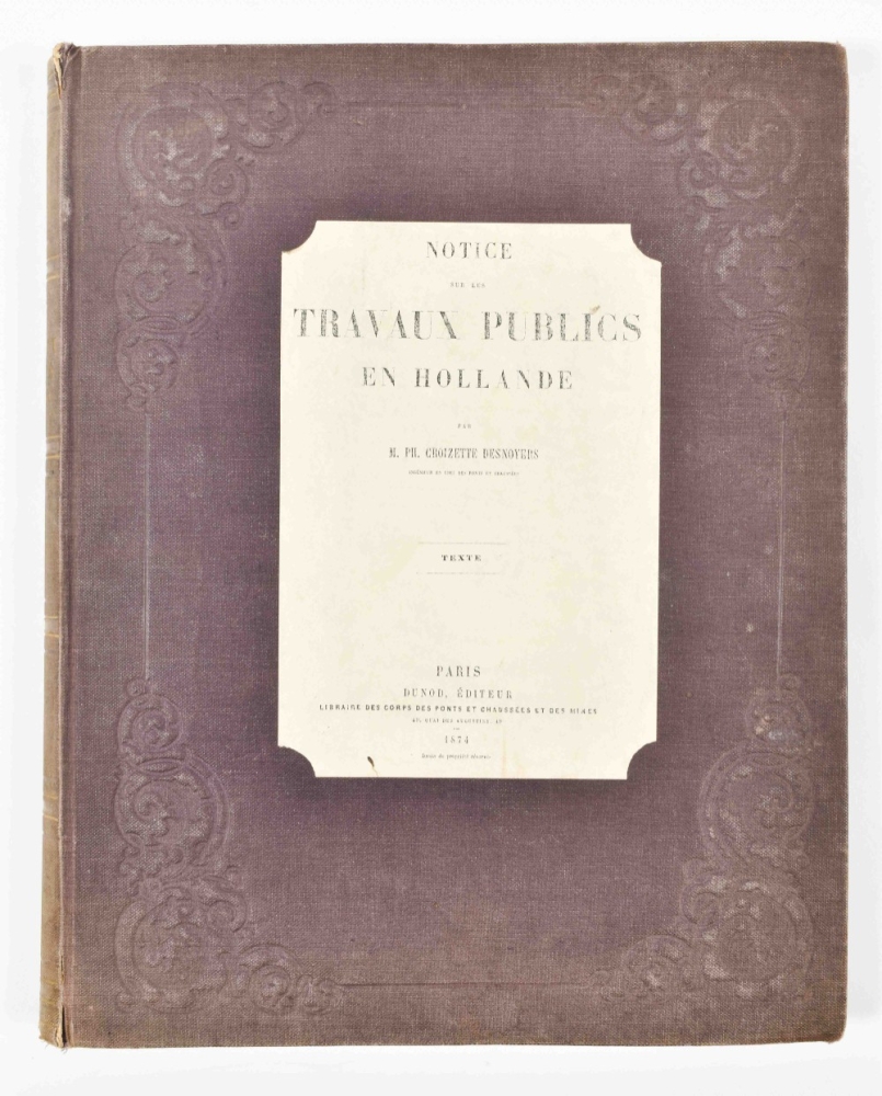 M. Ph. Croizette Desnoyers. Paris, Dunod, Libraire des Corps des Ponts et Chaussées et des Mines, 1874. 2 parts in one vol., text and plates. Large 4to, hard cloth, spine with gilt-stamped title, blindstamped boards, title vignette on front board, 207 pp. and 28 folding steel engravings.