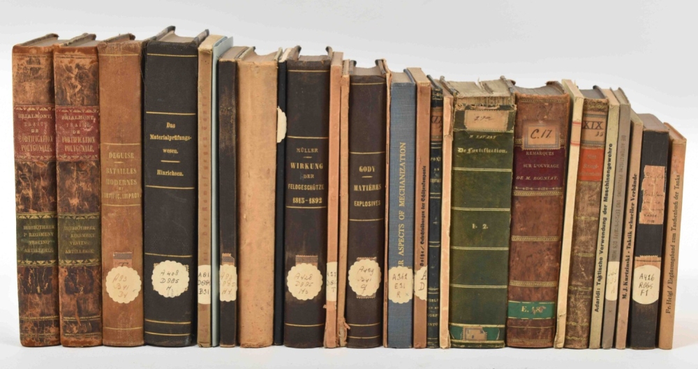 And 21 others on fortification, bridge building army engineering, weaponry, tanks and other army engineering subjects. All ex-library with traces of use. (total 25)