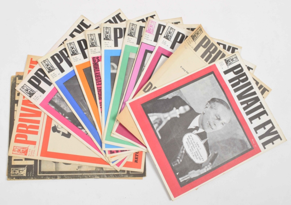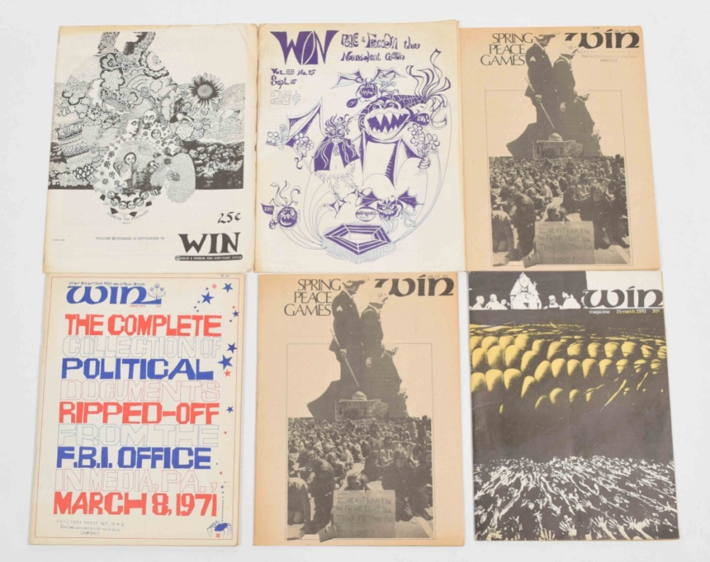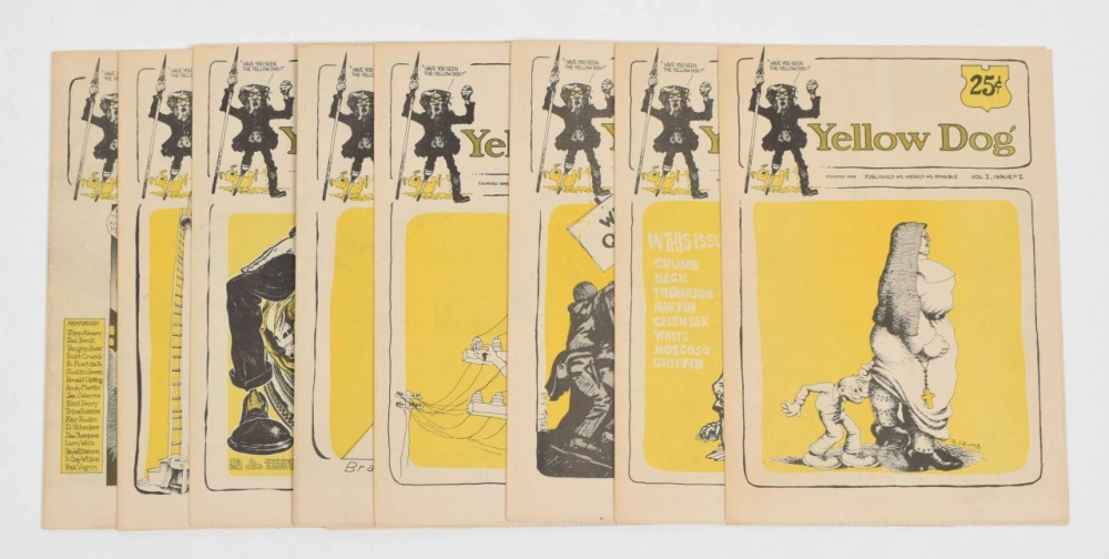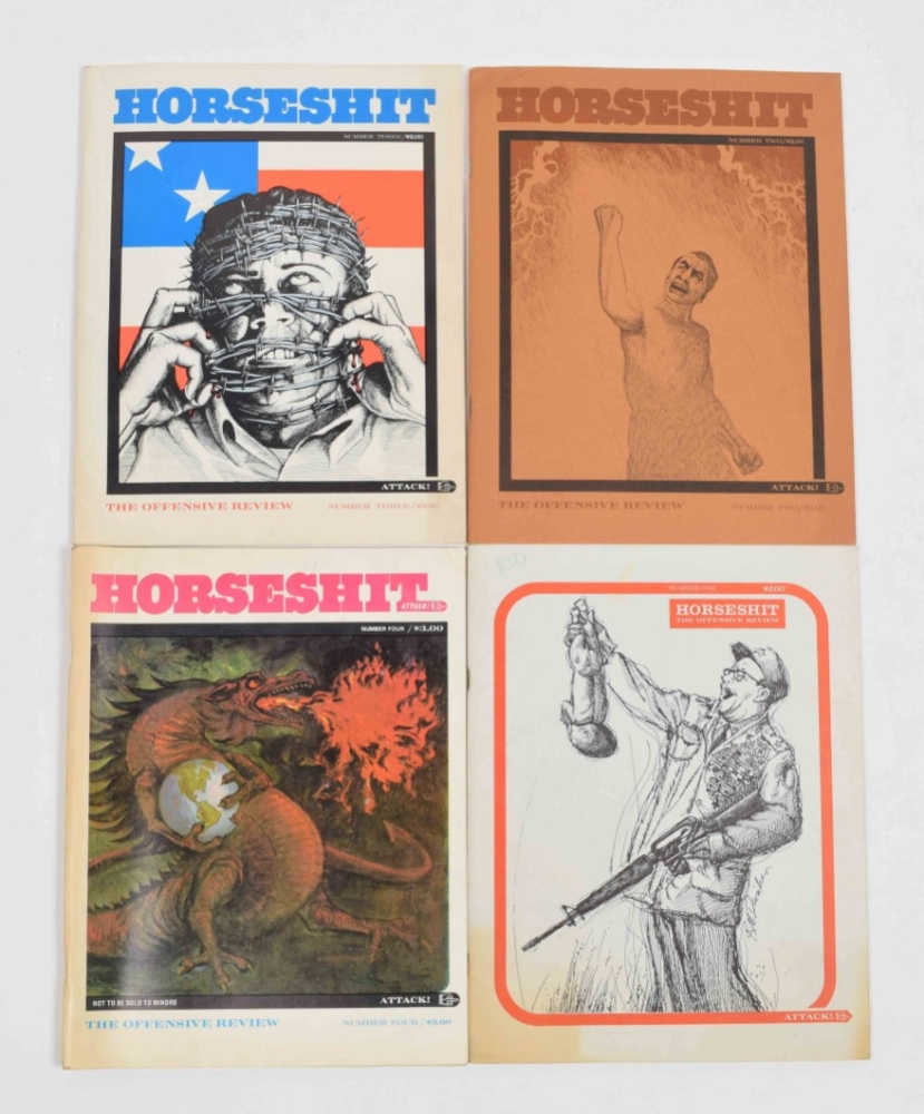 (1) Wayne Hansen et al. American Avatar. No.2 and 4 (of 4 issued), 1969. (2) Richard Ingrams. Private Eye. London. 13 issues between 1967 and 1970. (3) Robert and Thomas Dunker. Horseshit, the Offensive Review. No.1-4. Scum Publishing Company 1965-1969. (4) Win magazine 6 issues -and 10 more different magazines. Added: [Robert Crumb] Yellow dog comics No.1-12. Special 5th anniversary limited edition.