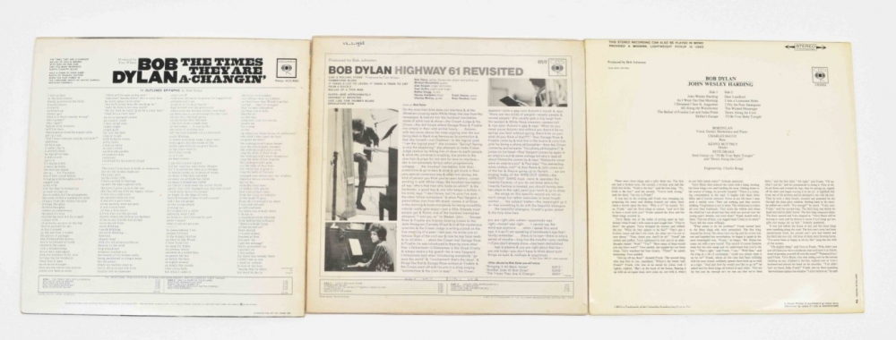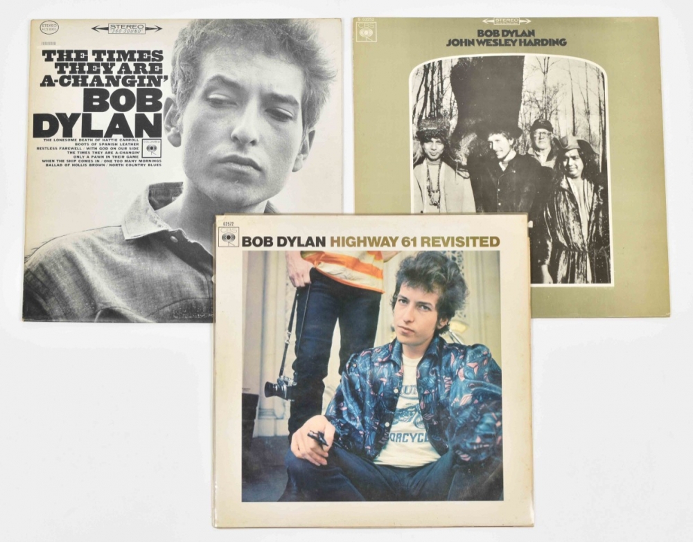 1)The Times they are a-Changin'. 1964, Columbia 8905. Later issue w. lyric sheet. 2) John Wesley Harding. 1968, CBS 63252. 3) Highway 61 Revisited. 1965, CBS 62572. And 30 others by Bob Dylan and The Band.