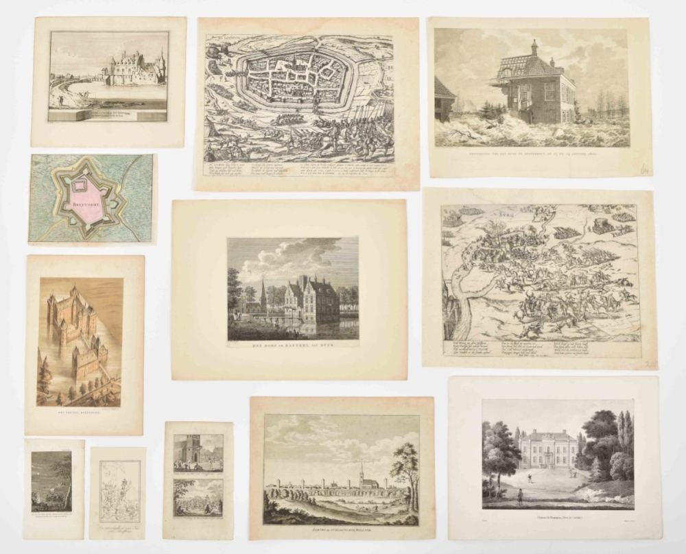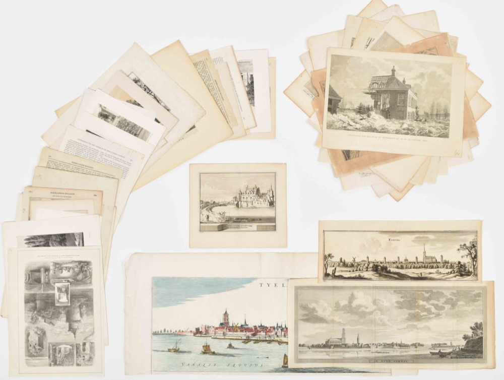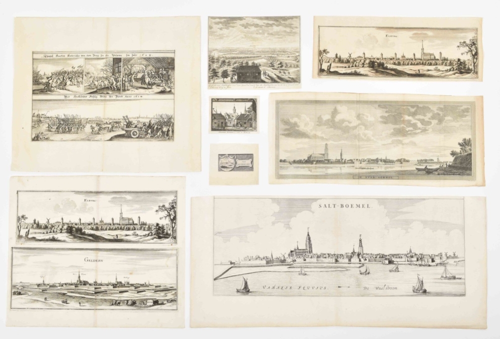 Collection of engravings, etchings, lithos etc. related to Zaltbommel, Tiel, Doetinchem, Lochem, Apeldoorn, Terborg, Elburg, Harderwijk etc. Engravings by Braun & Hogenberg, Merian, Blaeu, Tirion et al. Coloured and uncoloured. Various sizes and media (19th-cent. steel engravings not counted). Sold as seen w.a.f.