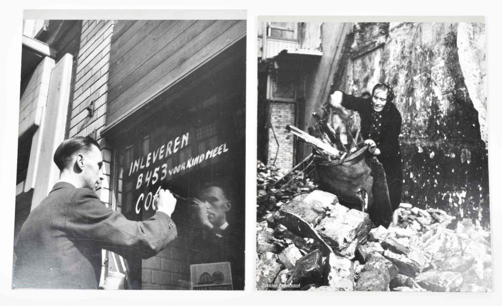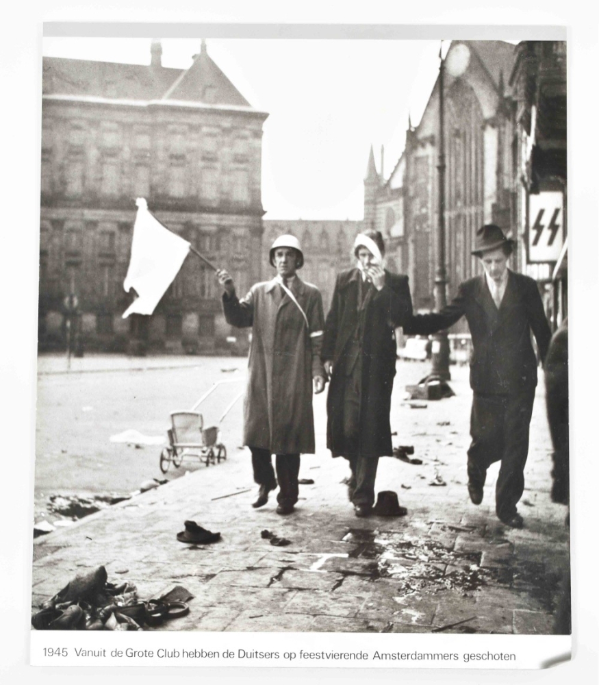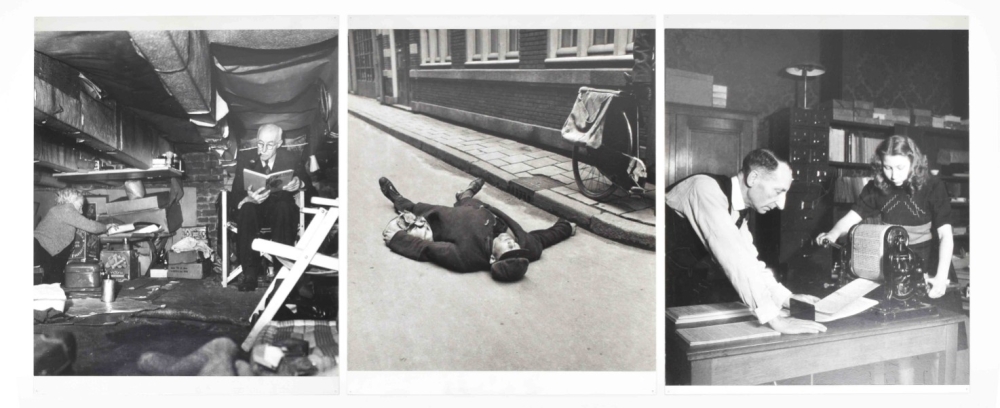 Six silver gelatin prints, depicting war scenes. Each ± 49.5 x 39.5 cm and mounted on an aluminium plate. All with Oorthuys's stamp on verso, 2 photos with title in margin of plate, 3 plates with 2 wooden slats affixed to reverse.