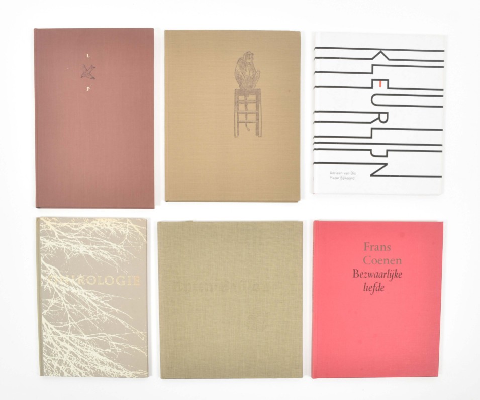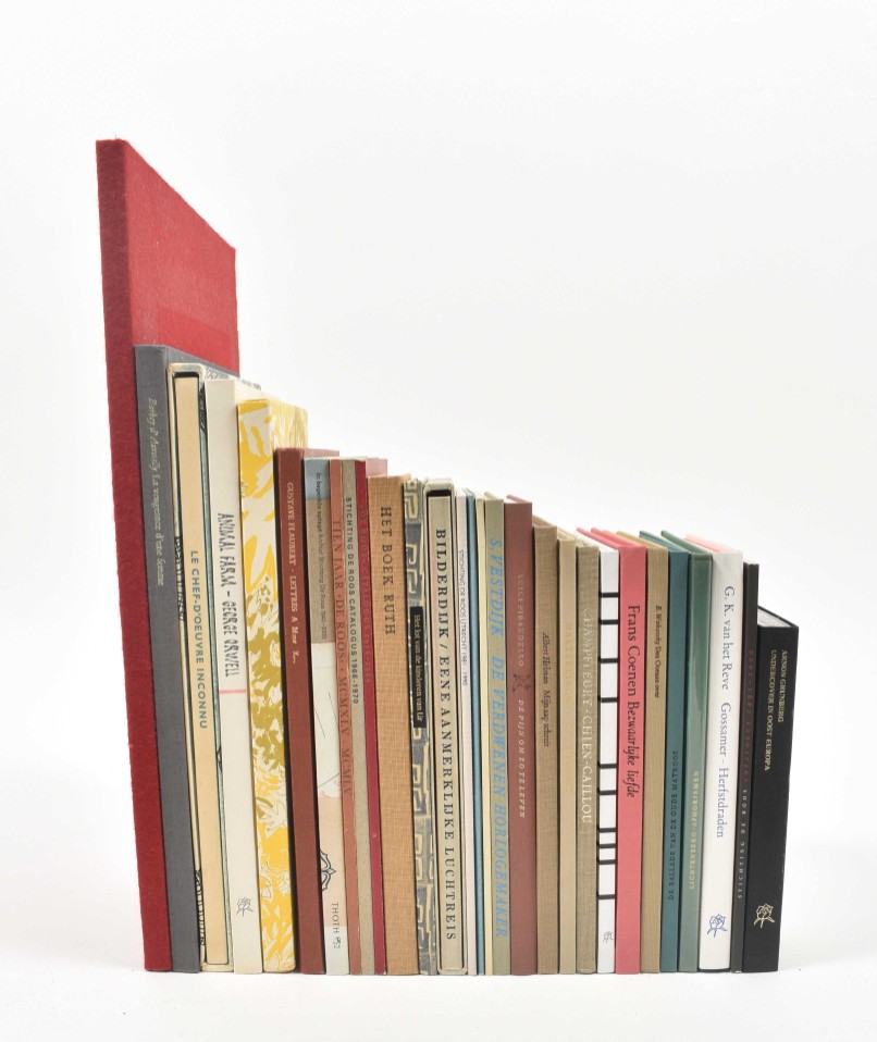 (3) Bob Den Uyl. Verhalen van de grote oorlog. With photos by Pieter Groot. Idem, 2001. 175 numbered copies. Folio. Velvet boards. - and 19 others by Stichting De Roos, incl. Frans Coenen, Adriaan van Dis, Pirandello, Barbey d'Aurevilly, George Orwell. Added: (4) 8 booklets on De Roos. All in good to fine condition. (total 30)