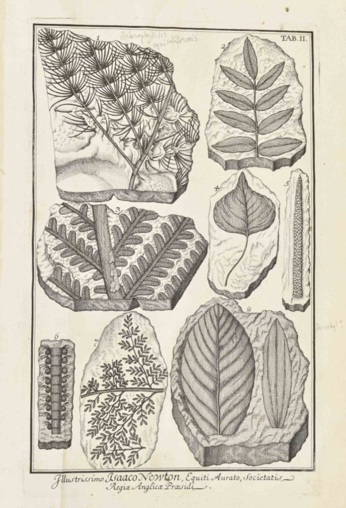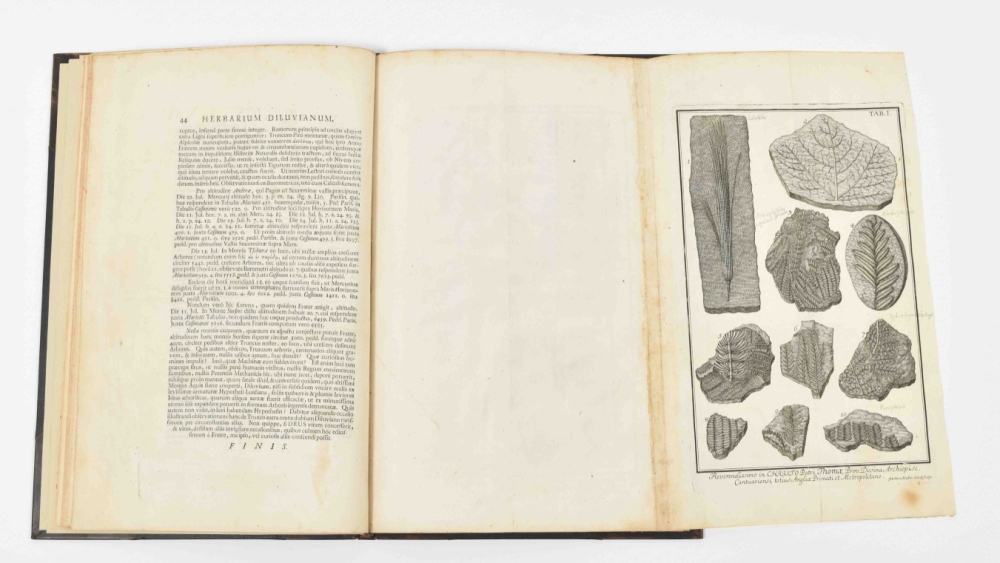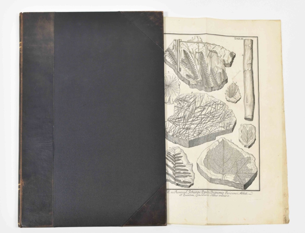 Zurich, David Gessner, 1709, 1st ed., 44 pp., followed by 12 folding plates depicting fossil plants (one printed in sanguine), modern half leather by Period Binders (Bath), gilt lettered spine, folio.