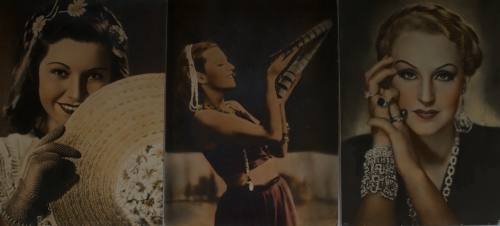 This item contains no English description. See the Dutch description: 14 handingekleurde foto's, vrouwenportretten, met signatuur "Joseo" ca. 1925. 39,5 x 29,5 cm.