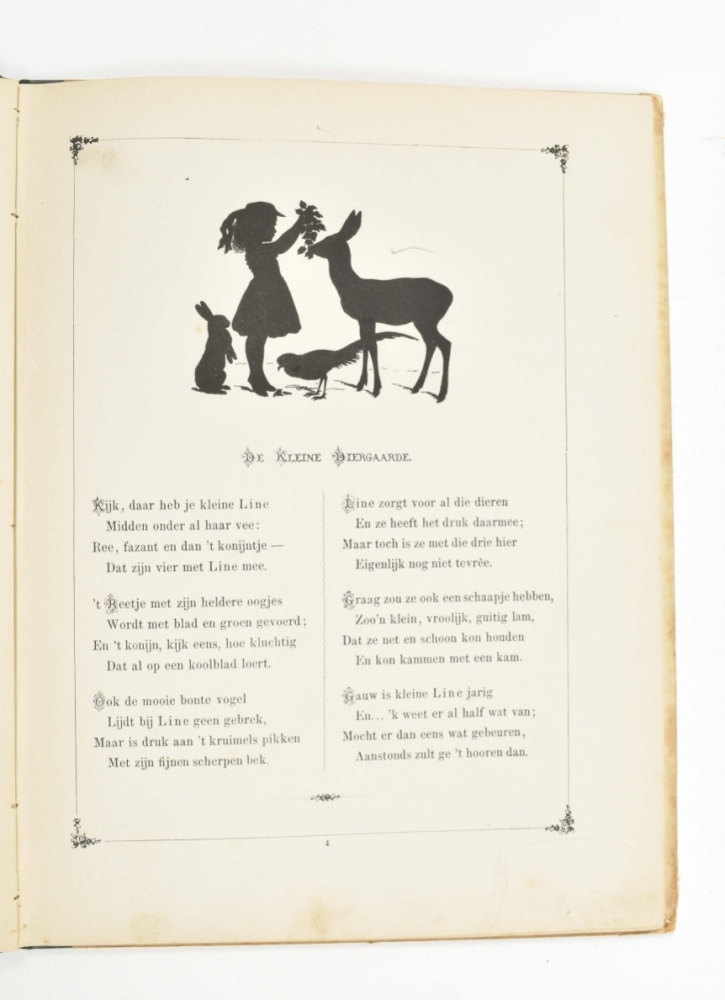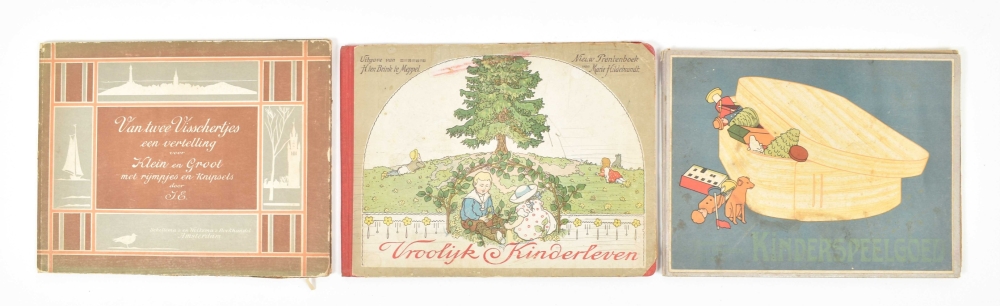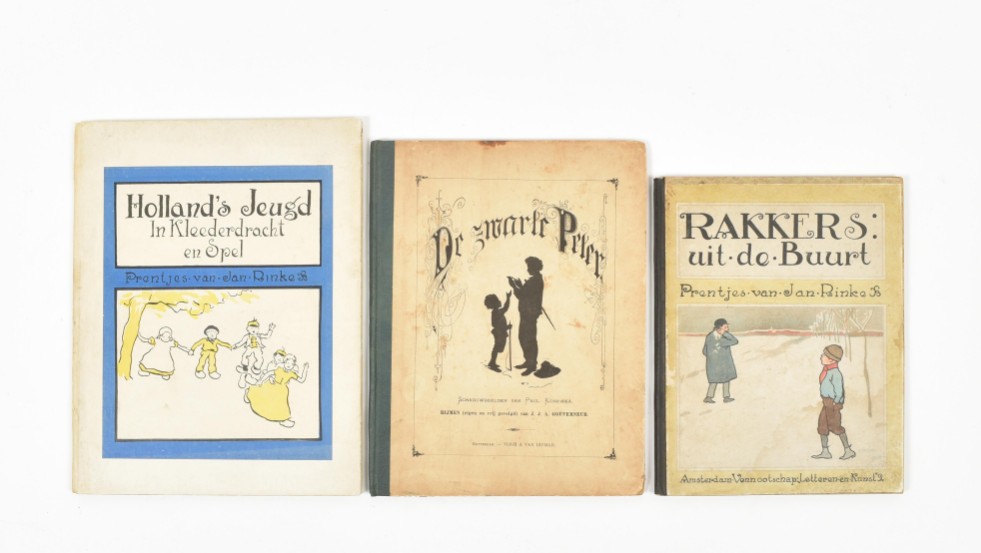 Met schaduwbeelden van Paul Konewka. Rotterdam, Nijgh & Van Ditmar, c. 1872. Hcl. (2) Rakkers uit de buurt. Prentjes van Jan Rinke. Amst., Vennootschap Letteren en Kunst, (1910). Hcl. (3) Hollands jeugd in kleederdracht en spel. Prentjes van Jan Rinke. Den Haag, (1931). -and 5 Dutch oblong picture books, early 20th century.