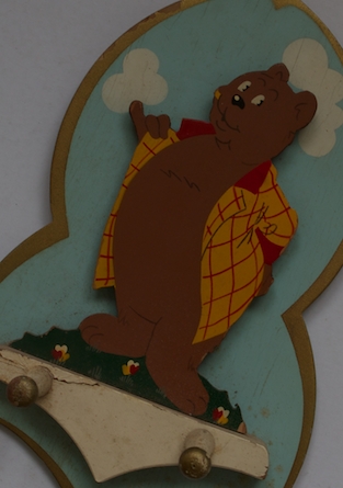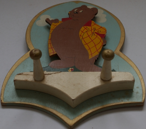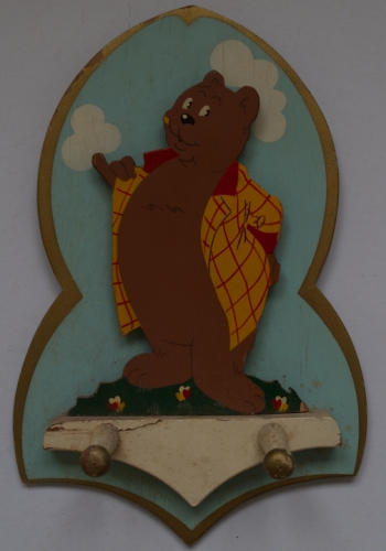 See the Dutch description: Kapstokje heer Bommel. Hoogte 30 cm. Met twee hangertjes. Waarschijnlijk uitgegeven door "Kleur en Profiel Nederland, Tiel", maar zonder stempel op achterzijde. Het pijpje ontbreekt, verder vrij mooi exemplaar.