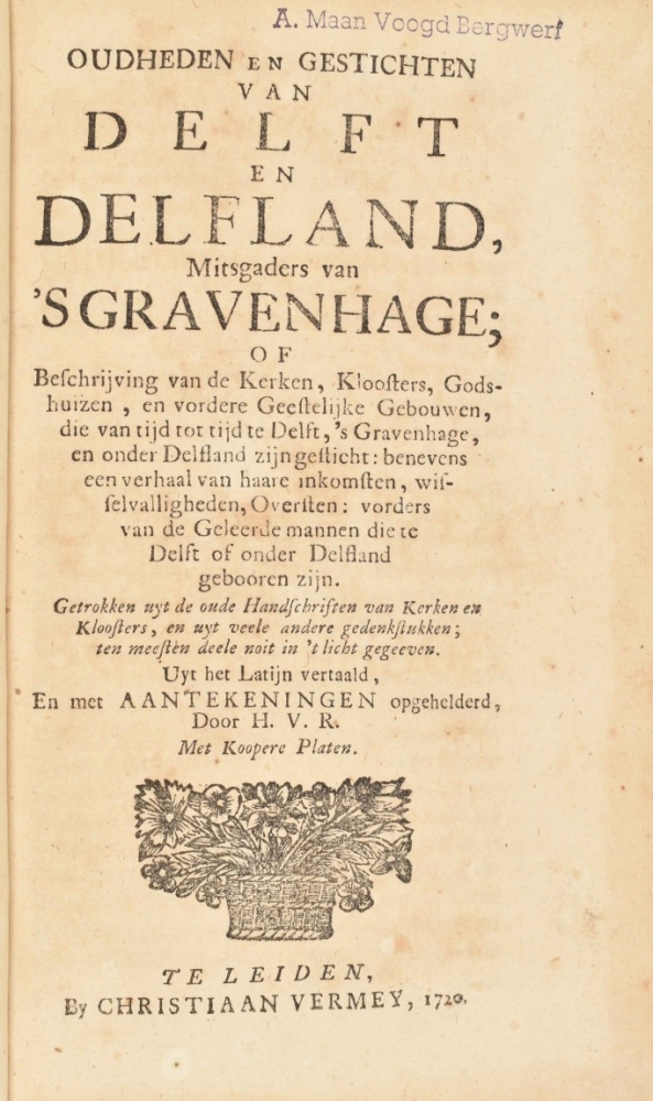 [Zuid-Holland. The Hague] Oudheden en gestichten van Delft en Delfland,