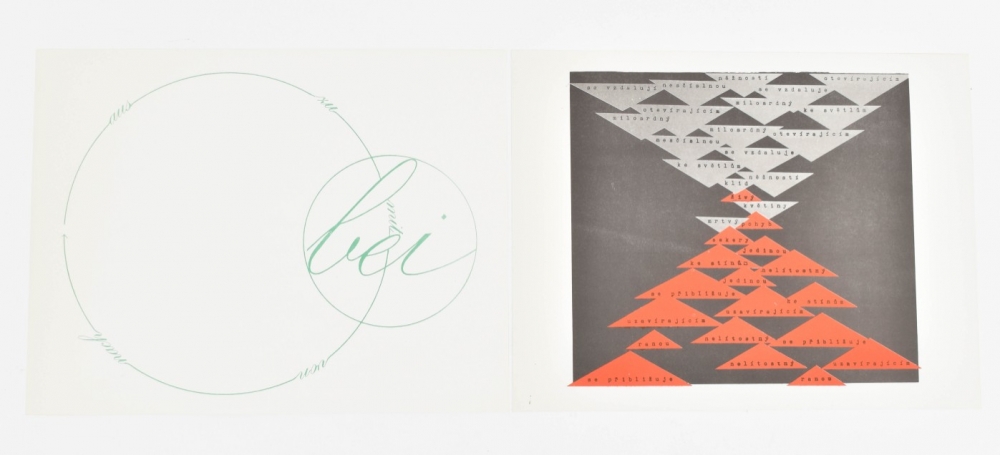 Contributions by Bohumila Grögerová, Josef Hiršal, Josef Honys, Jirí Kolár, Dana Konecná, Karel Milota, Ladislav Nebesky, Ladislav Novák, Jindrich Procházka, Karel Trinkewitz, Jirí Valoch. Portfolio very good, plates all mint.