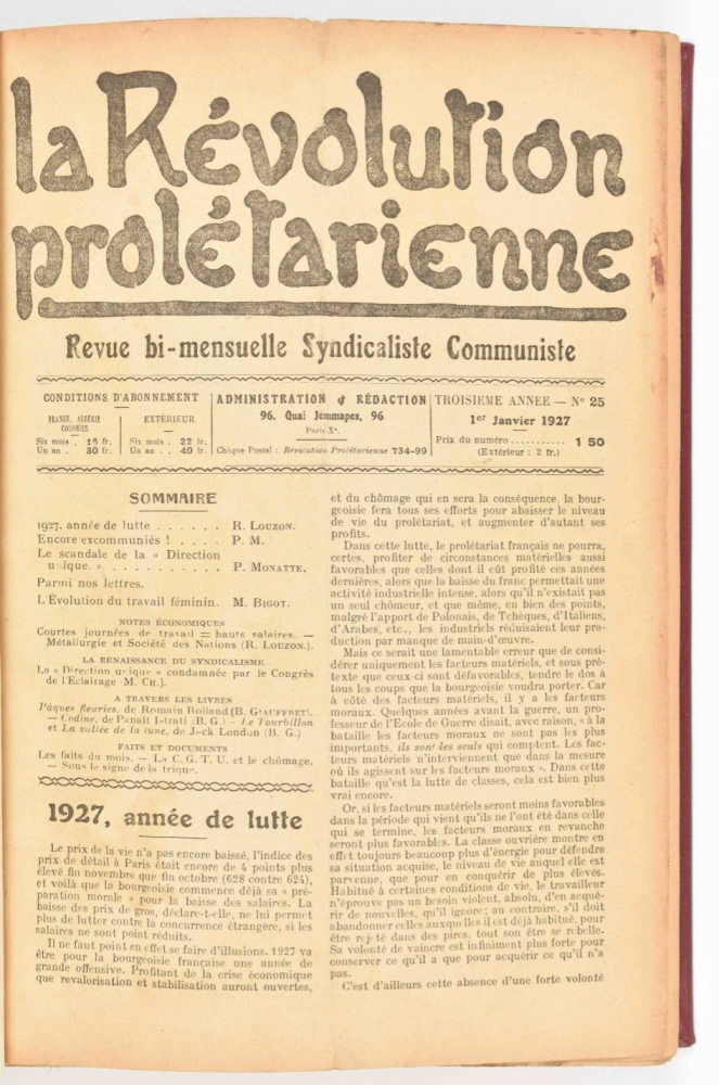 [Magazines. Syndicalism] La Révolution Prolétarienne