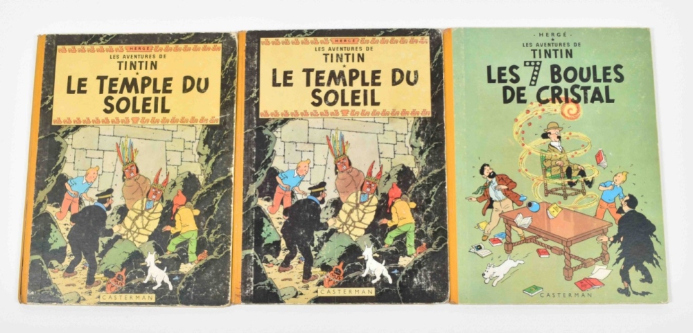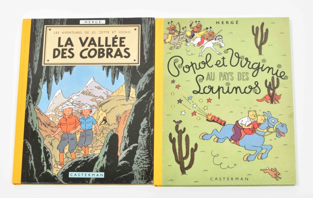 Lot containing: Les aventures Tintin au Tibet. 1st ed., 1963. Good copy, slight wear at sides and corners as usual + Le Temple du Soleil edition 1960 and 1963, both in acceptable condition + Les 7 boules de Cristal, ed. 1960. Good copy -and 3 more + 5 facsimile editions: 1) Les Adventures de Jo, Zette et Jocko, la vallee des cobra's; 2) Les Aventures de Tintin, L'Ile Noire; 3) Povov et Virginie au paus des Lopinos; 4) Les exploits de Quick et Flupke Vol I; 5) Les exploits de Quick et Flupke, vol II.