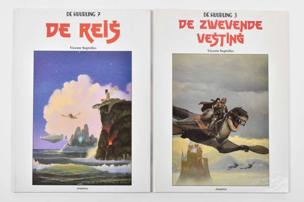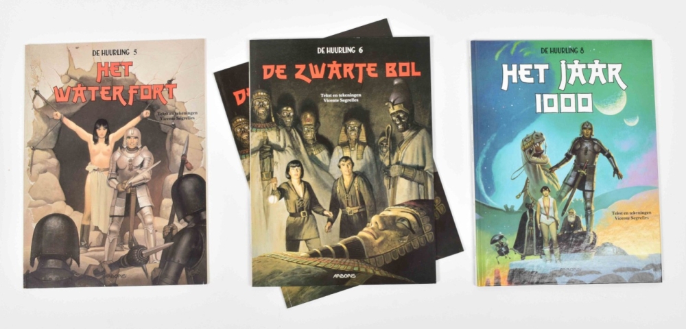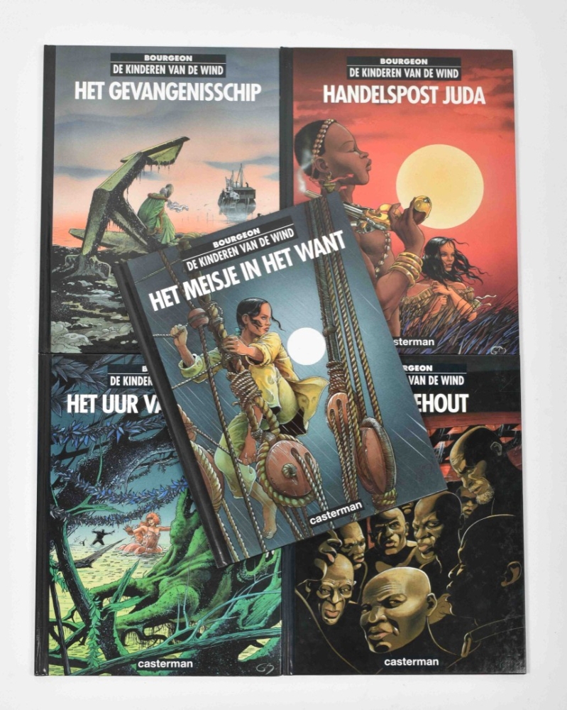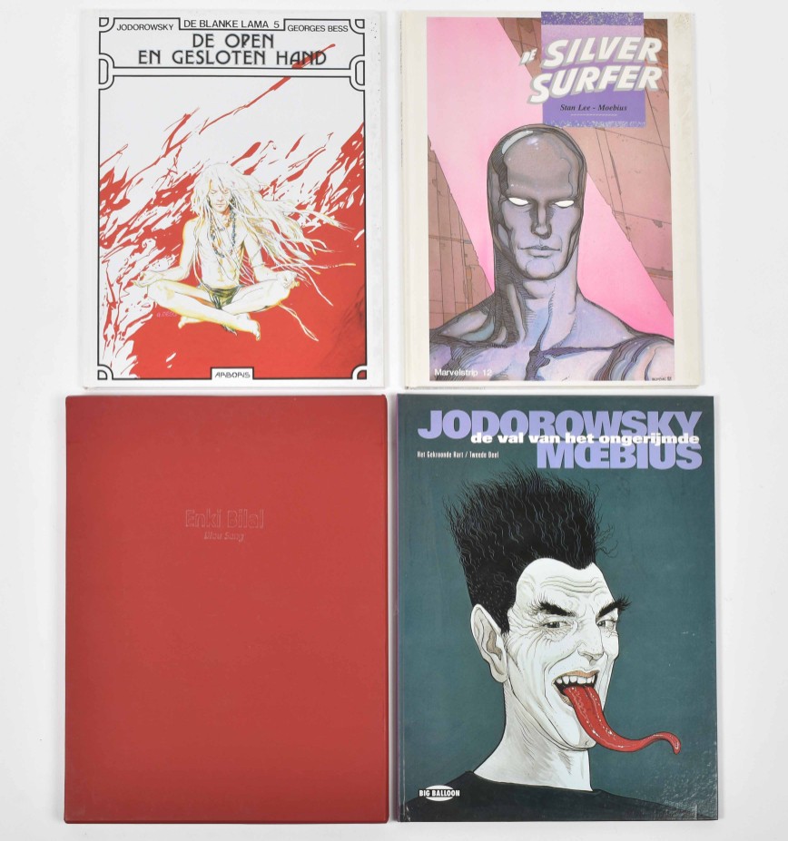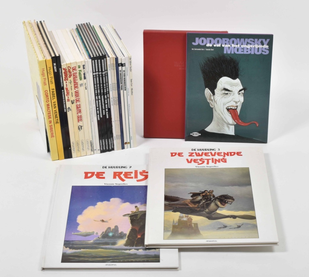 Folio edition no. 3 and 7 hc, Arboris, 1994-97. Signed and numbered + 4 more by Segrelles + Bourgeon. De kinderen van de Wind. Vol. 1-5, Casterman, hc, 1995-96 + Enki Bilal. Bleu Sang. Christian Desbois ed., hc, 1994. Signed and numbered in slipcase -and 17 more by Hugo Pratt, Bilal, Moebius and Fred.
