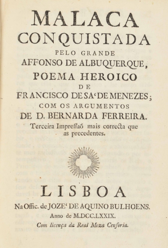 Epic poem on the conquest of Málaga by Afonso de Albuquerque. Endpapers foxed, binding rubbed, leather sl. dam.