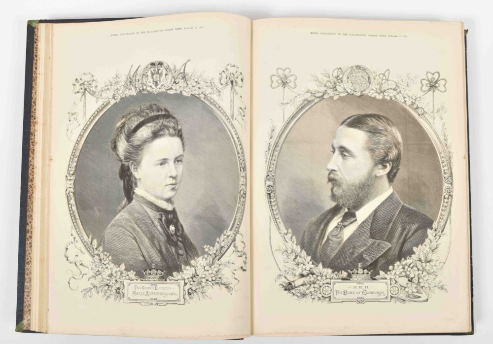 London, George Leighton, Jan. - Dec. 1874. 2 vols. containing vol. LXIV-LXV: no. 1793-1846. 620, (2); 620, (2) pp. With illustrated title pages and numerous large folding and full-page engraved plates. Uniform halfcalf, gilt title on spine, folio size.