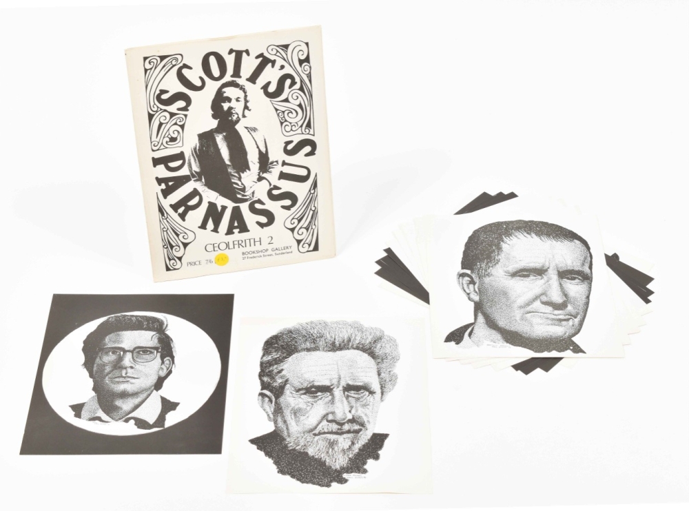 Artists’ filled envelopes published by Ceolfrith Arts Centre, Sunderland. Includes: Ceolfrith 2, Eric Scott, Scott's Parnassus, 1970. Twelve drawings in a decorated folder. Some aging on exterior, interior fine. Rare + Ceolfrith 13. Chris Nolan, Recent Works, 1971. Edition of 200, 5 pp. in (creased) brown decorated envelope, interior fine.