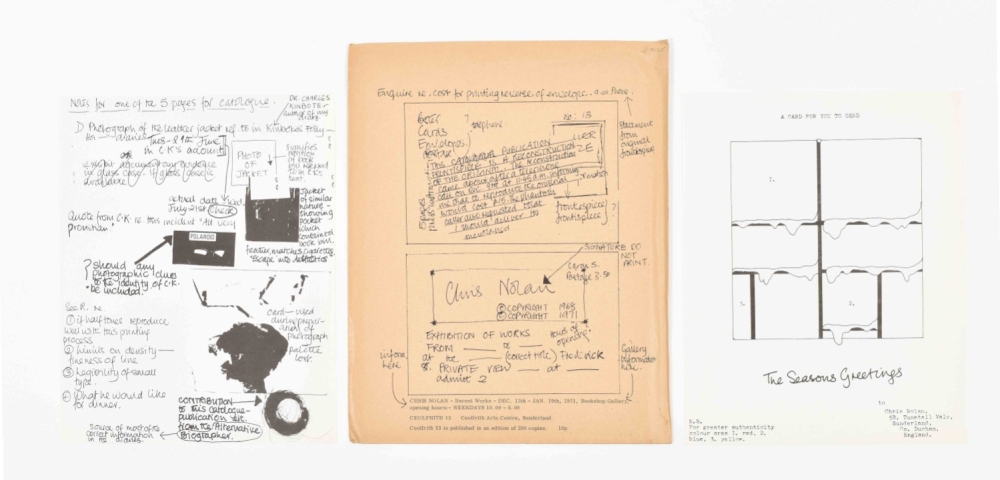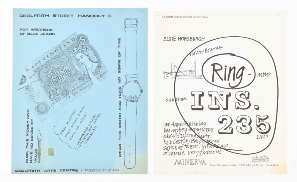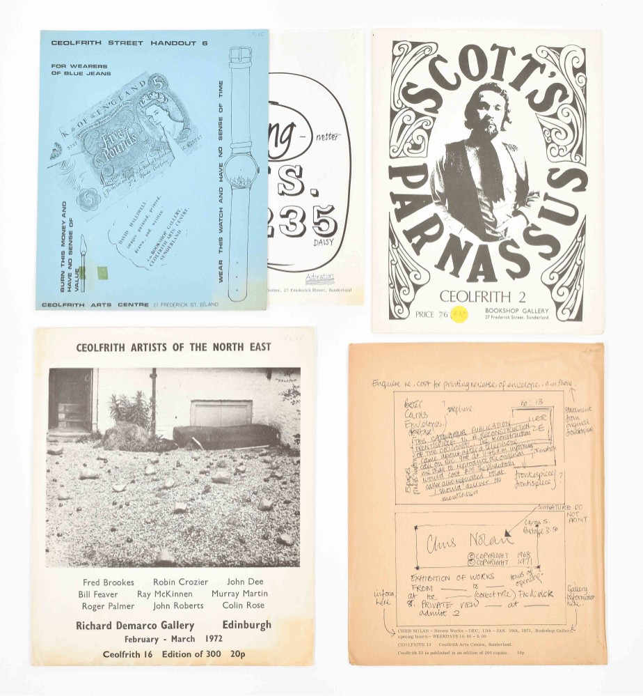 + Ceolfrith 16. Published in conjunction with the exhibition 'Ceolfrith artists of the North East' at Richard Demarco Gallery Edinburgh, 1972. Includes an original collage by Robin Crozier. + Two Ceolfrith Street handouts. No. 4 with Hamilton Finlay and No. 6 by David Halliwell, which lacks the affixed match. (total 5)