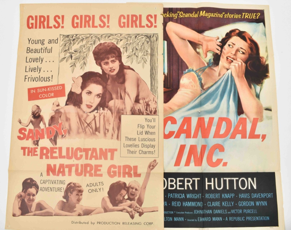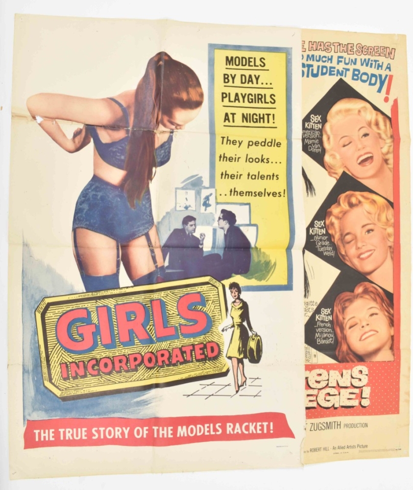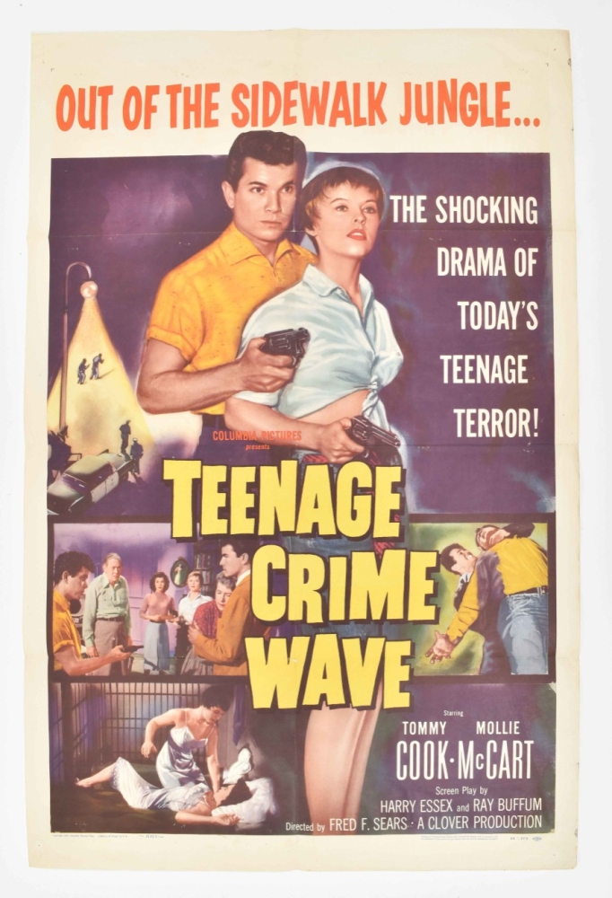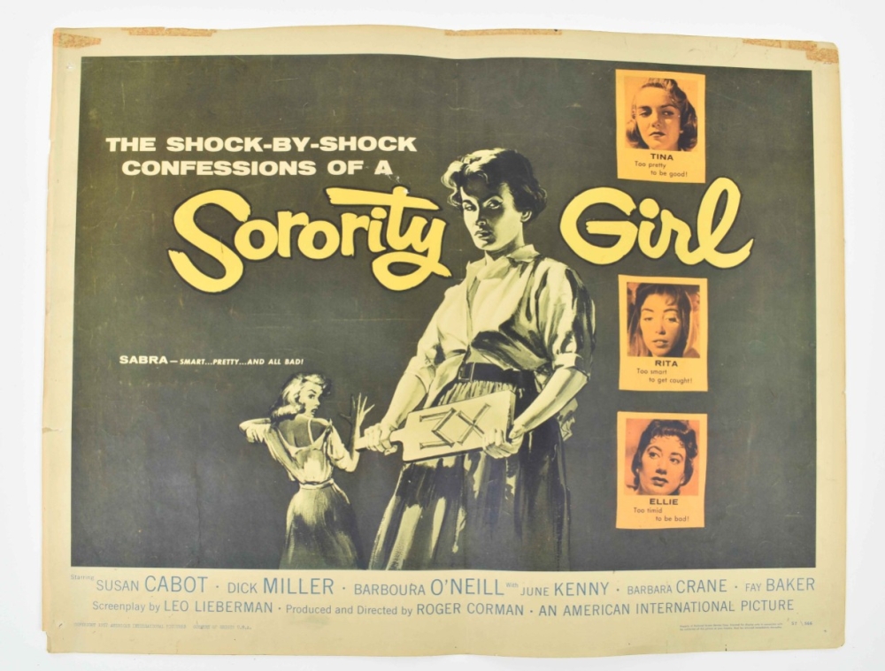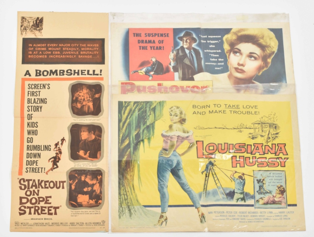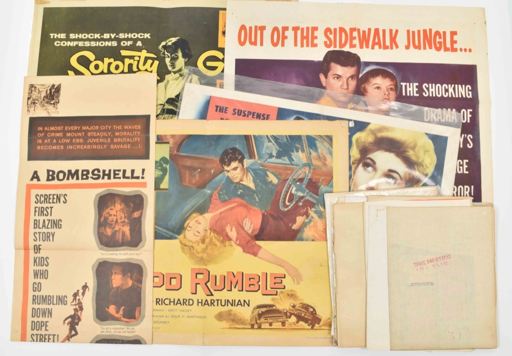 Lot with 15 posters: 1) The Shock-by-shock confessions of a Sorority Girl. Starring Susan Cabot, Dick Miller a.o., 1957. 56 x 71, centerfold, pinholes; 2)Louisiana Hussy. Born to take love and make trouble. Starring Nan Peterson, Peter Coe a.o., 1959. 56 x 71 cm. Folded; 3) Teenage Crime Wave. Starring Tommy Cook and Mollie Mc Cart, 1955. 104 x 68 cm. -and 12 more from the 1950s/60s.