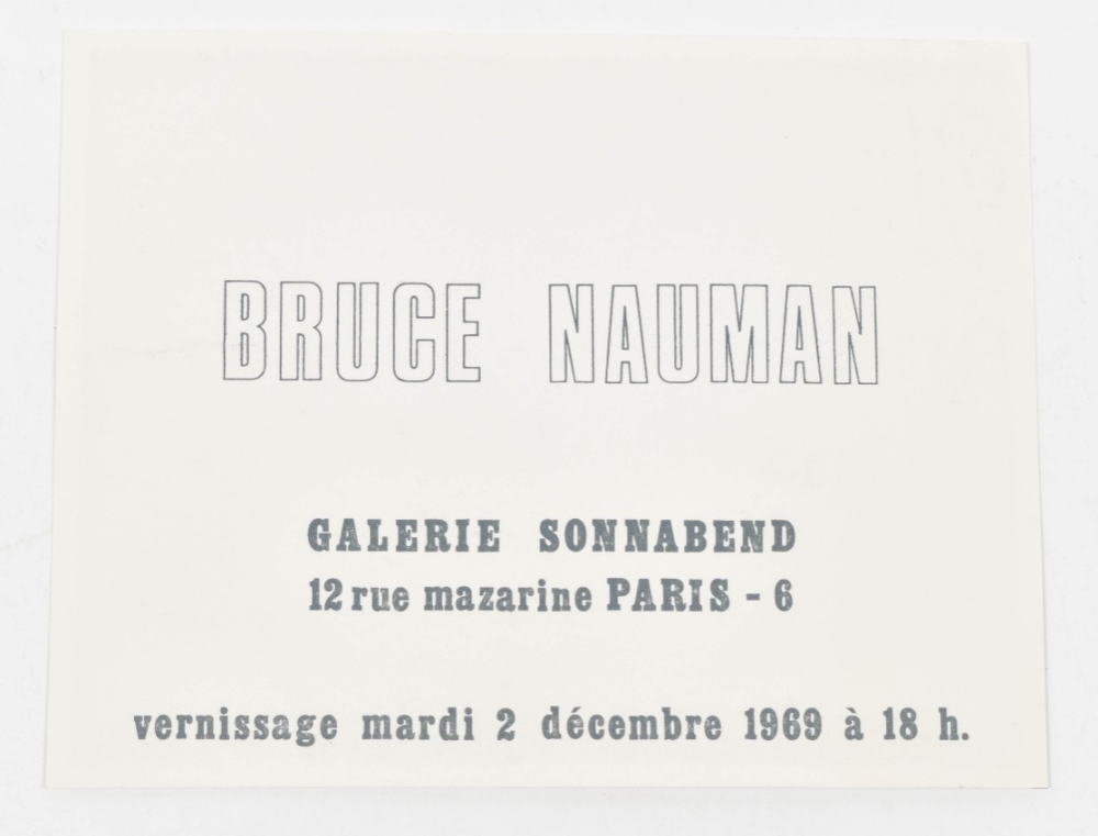 Set of 18 announcement cards and 4 booklets from the period 1968 to 1973. Booklets feature Dan Flavin, Arman, Morris and Zorio. Cards feature Nauman (1969), Warhol (1970), Bernd and Hilla Becher (1970), Boltanski (1971), Anne et Patrick Poirier (1973), Baldessari (1973).