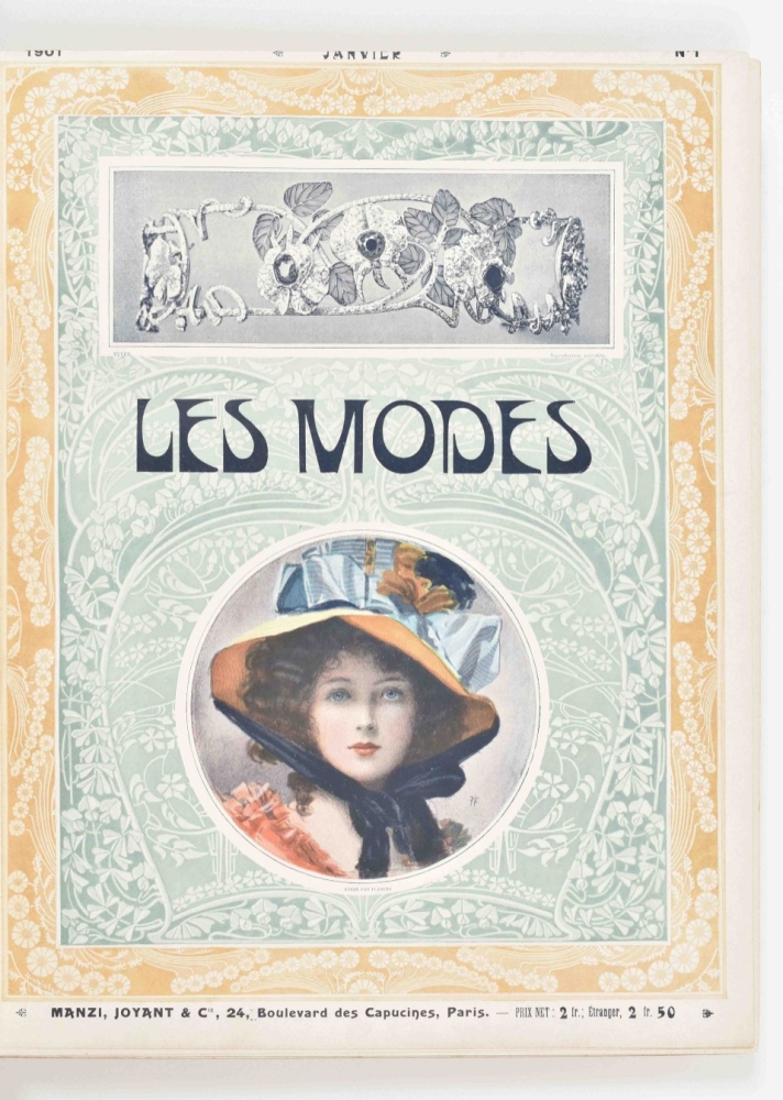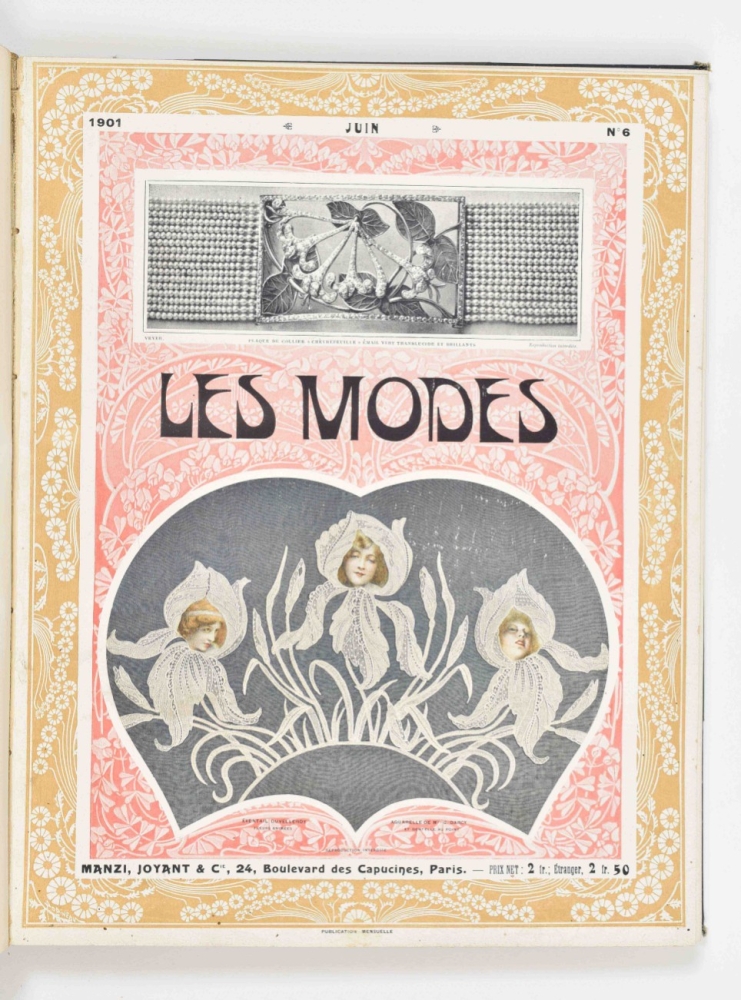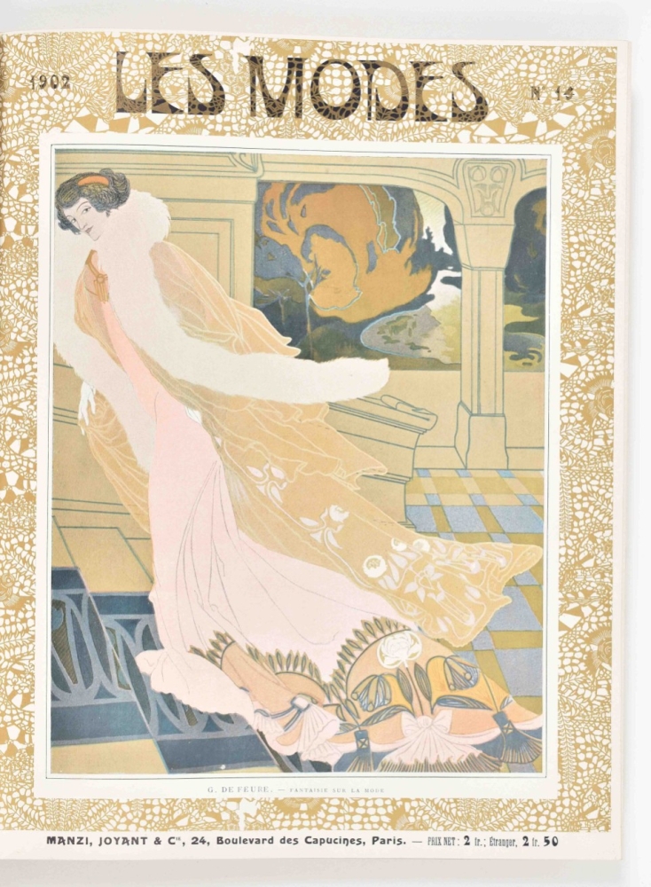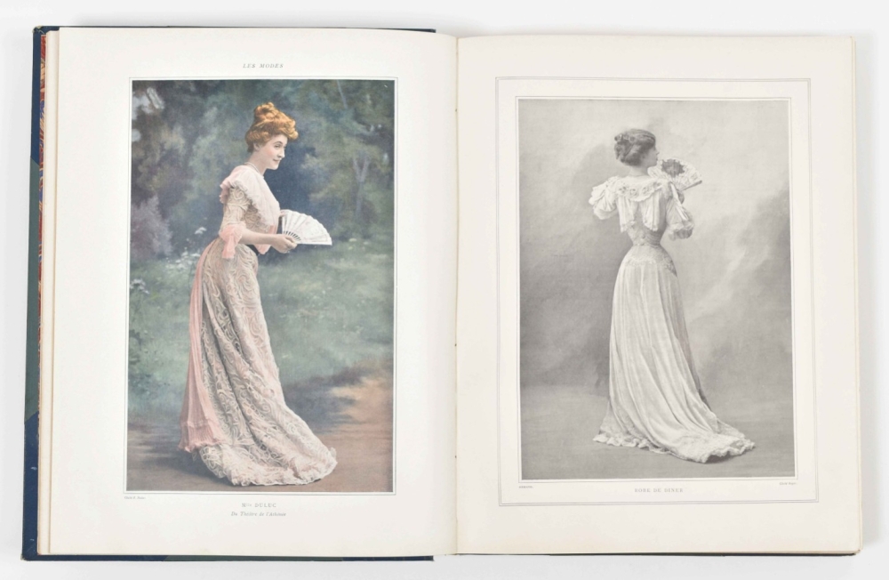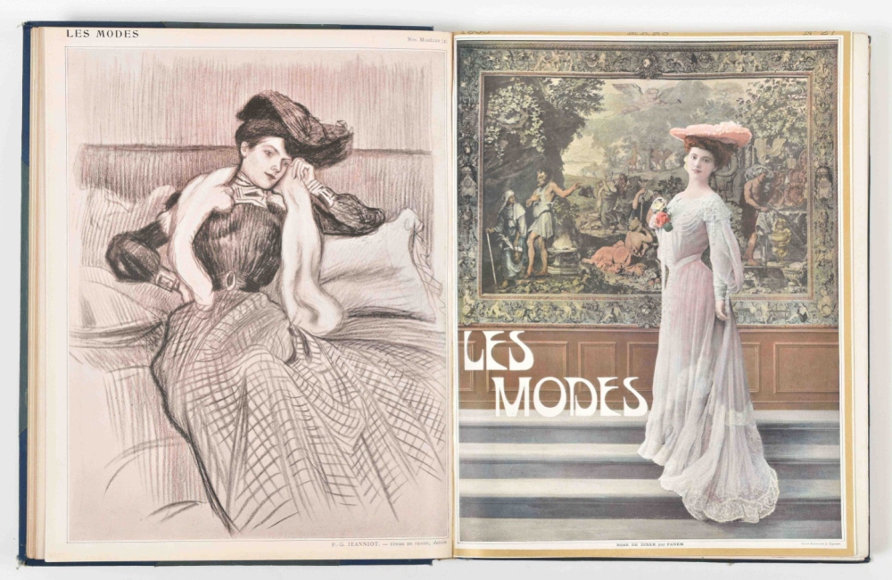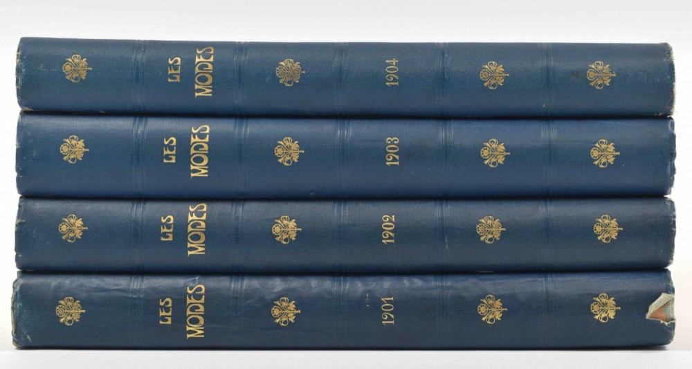Revue mensuelle illustrée, des arts décoratifs appliqueés à la femme. Paris, Goupil & C. Complete run between 1901-1904. Illustrated with photographs and (coloured) drawings of Parisian haute couture. Bound with the orig. coloured ill. covers. Uniform cloth, gilt title and year on frontboards and spines, folio size.