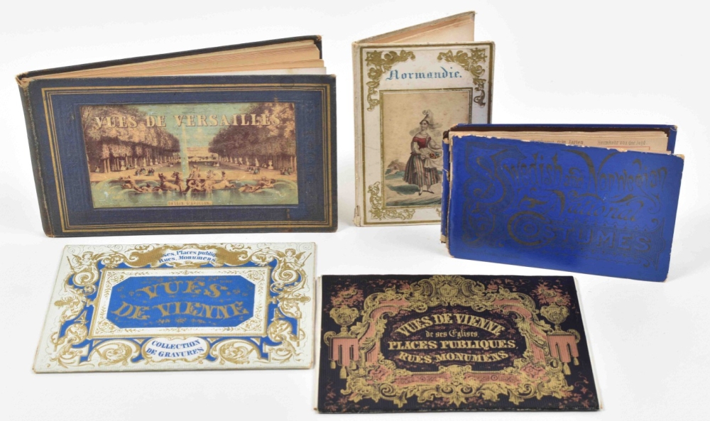 Complete set of 24 fine miniature views. And 3 other souvenir booklets of Swedish & Norwegian costumes, Normandy and Versailles. (total 5)