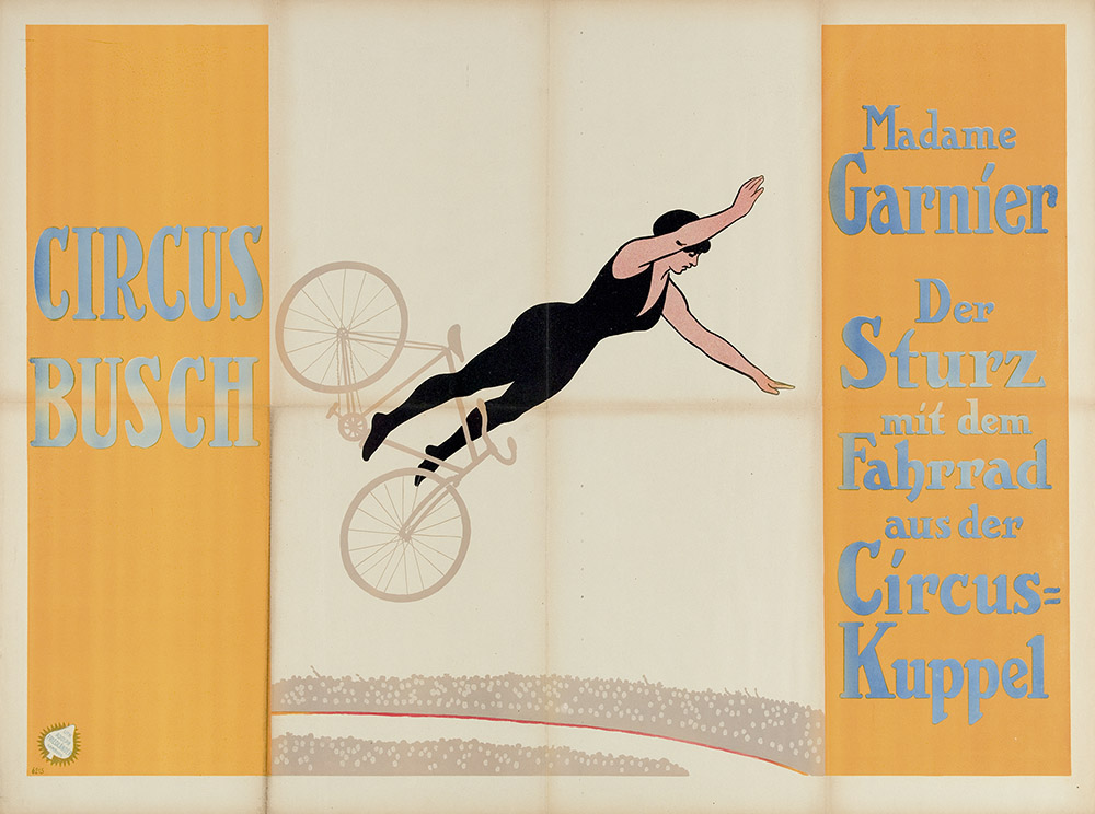 [Bicycle. Circus Busch] Madame Garnier. Der sturz mit dem Fahrrad